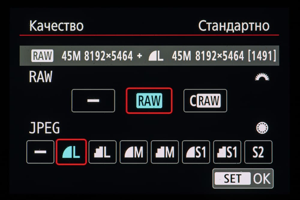 | Разрешение фотоснимков | 3:2: (L/RAW/C-RAW) 8192×5464, (M1) 5808×3872, (S1) 4176×2784, (S2) 2400×1600; 1,6× обрезка: (L) 5088×3392, (S2) 2400×1600; 4:3: (L) 7280×5464, (M1) 5152×3872, (S1) 3712×2784, (S2) 2112×1600; 16:9: (L) 8192×4608, (M1) 5808×3264, (S1) 4176×2344, (S2) 2400×1344; 1:1: (L) 5456×5456, (M1) 3872×3872, (S1) 2784×2784, (S2) 1600×1600 |
