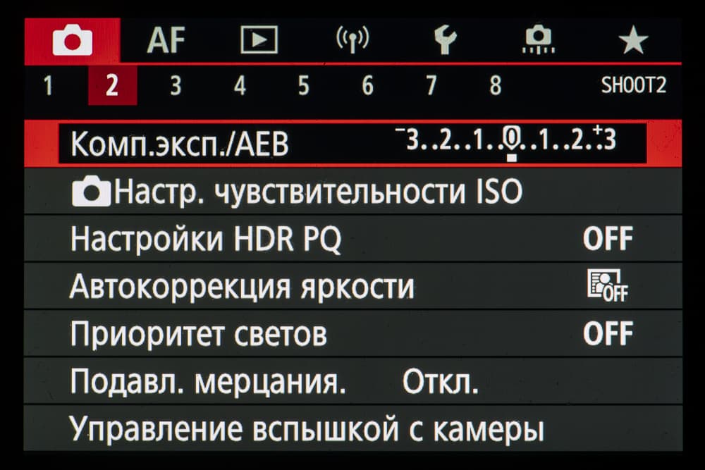 | Экспокоррекция | от −3 до +3 EV с шагом ⅓ или ½ EV |