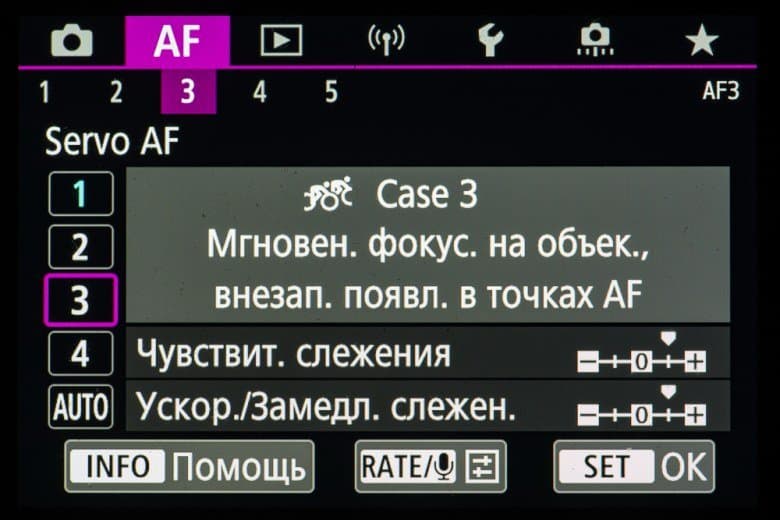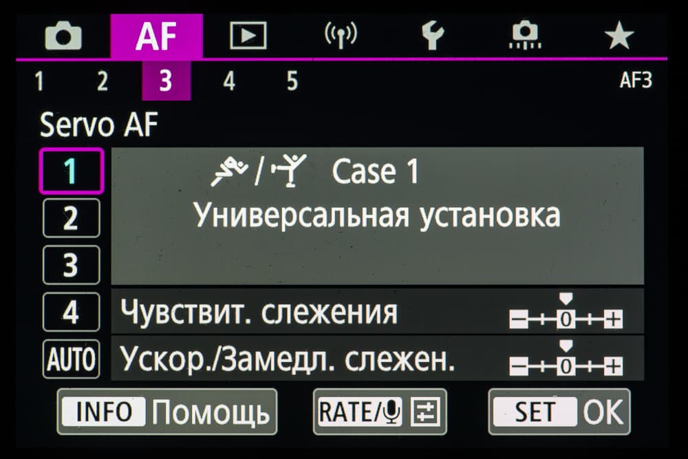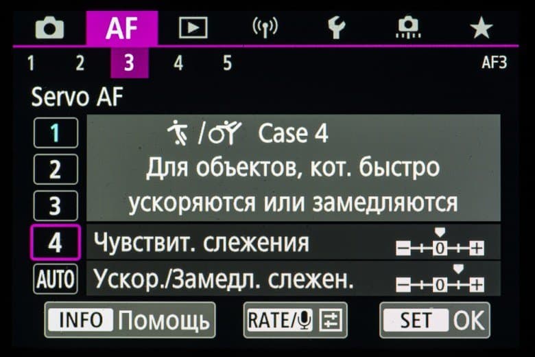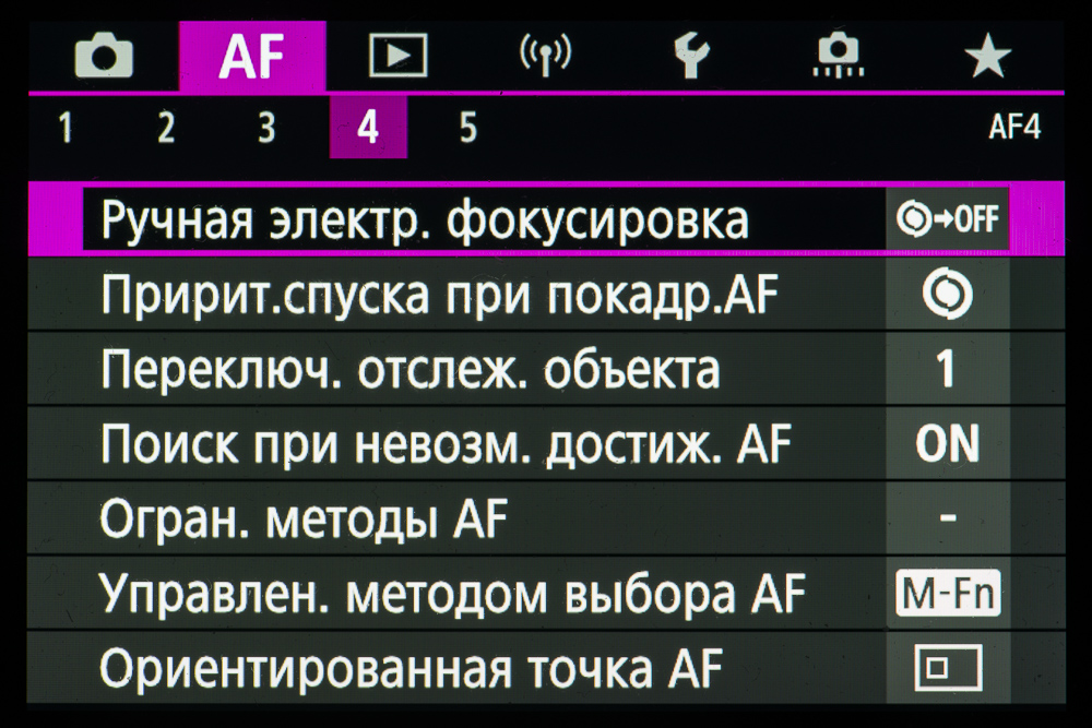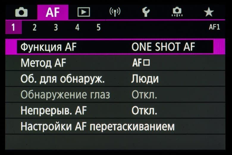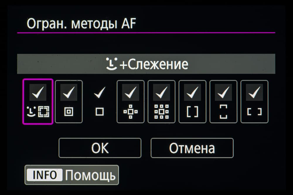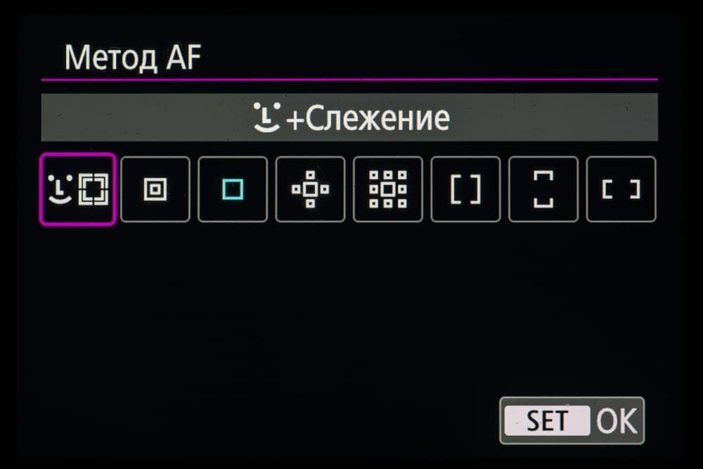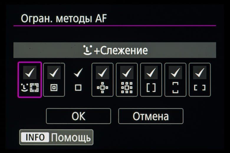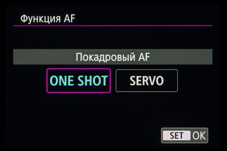 - однокадровая или следящая автоматическая фокусировка (в зависимости от динамики сцены),