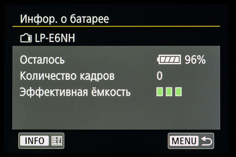 В соответствии с методикой CIPA штатная батарея LP-E6NH позволяет отснять до 490 кадров при визировании по дисплею или до 320 при визировании через видоискатель.