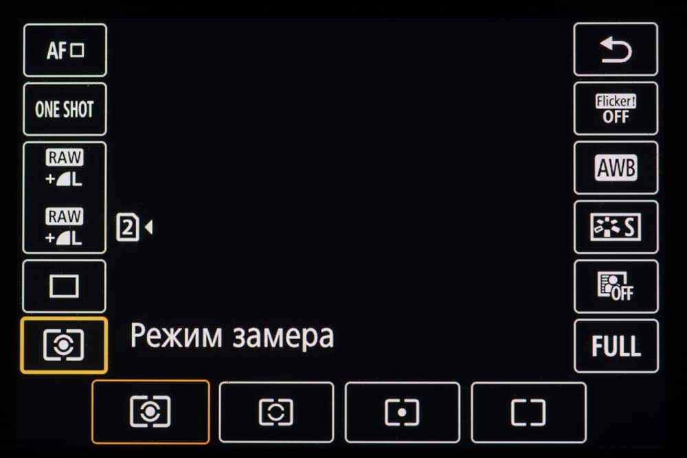 - центрально-взвешенный замер экспозиции,