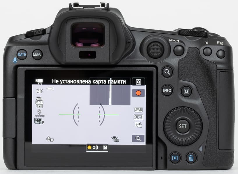 Компоновка Canon EOS R5 вполне традиционная и соответствует совокупным представлениям о типичной беззеркальной камере высокого класса.