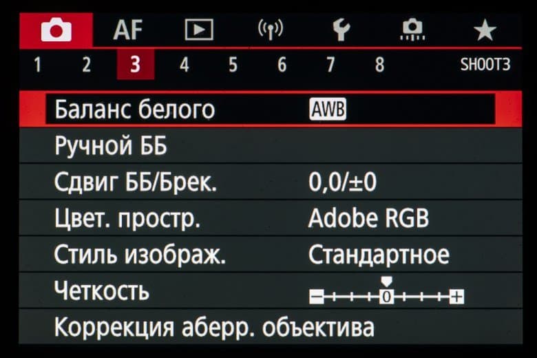 - автоматический баланс белого (АББ).
