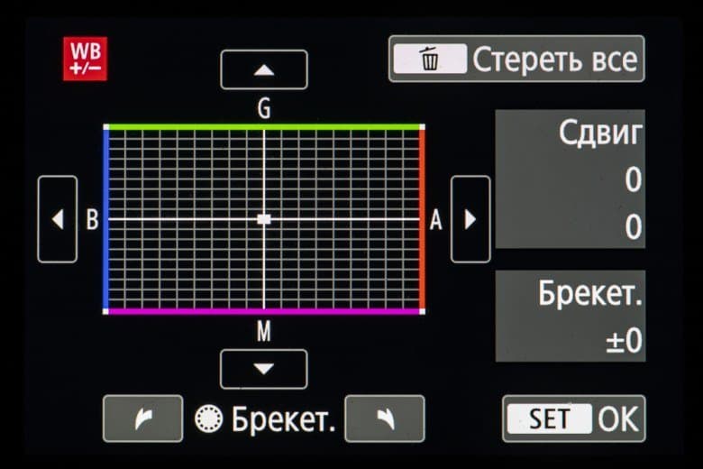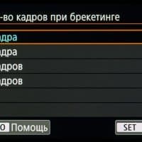 | Брекетинг баланса белого | 3, 5 или 7 кадров, от −3 до +3 ступени с шагом в 1 ступень |