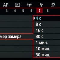 | Доступные значения выдержки | от 1/8000 с до 30 с с шагом ⅓ или ½ EV, выдержка от руки |