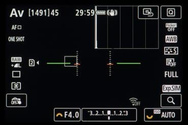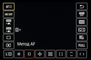 | Автофокусировка (АФ) | Dual Pixel CMOS AF II; охват кадра: 100% по вертикали и 100% по горизонтали в режиме автоматического выбора, 100% по горизонтали и 90% по вертикали при выборе вручную и режиме большой зоны |