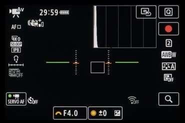 | Зоны АФ | автоматический выбор: лицо + слежение (1053 зоны); выбор вручную: одноточечная (5940 зон для фото или 4500 для видео), расширение на 4 точки, расширение по окружающим точкам, зональная (9 зон), большие зоны (вертикальная и горизонтальная) |