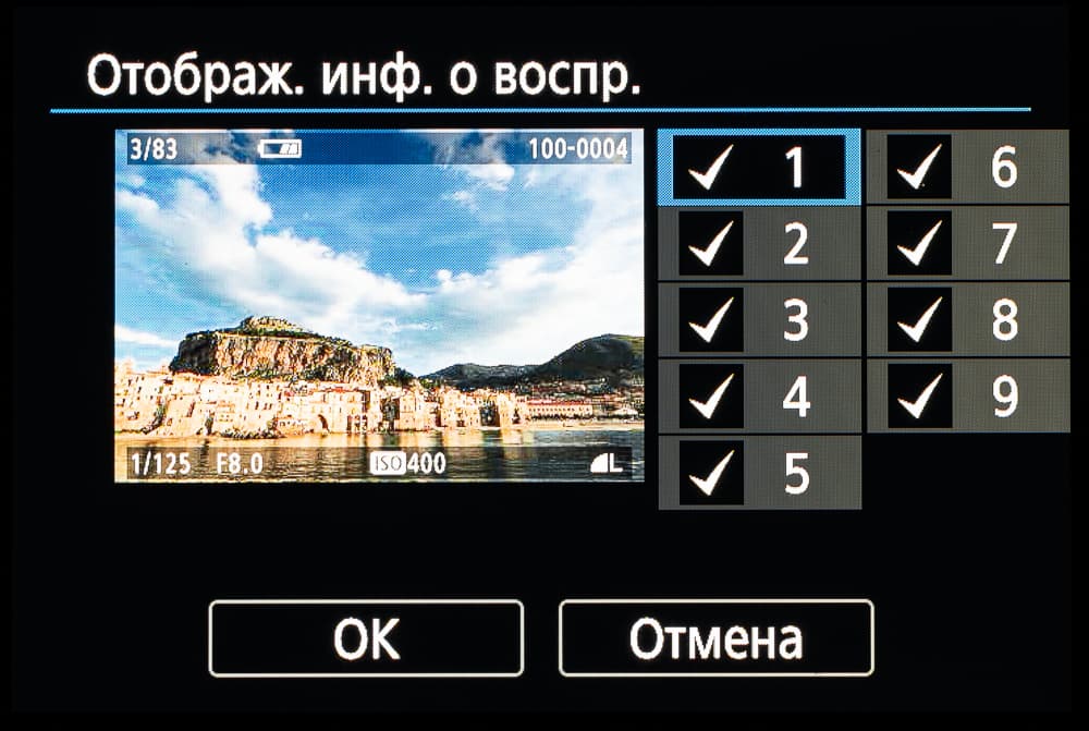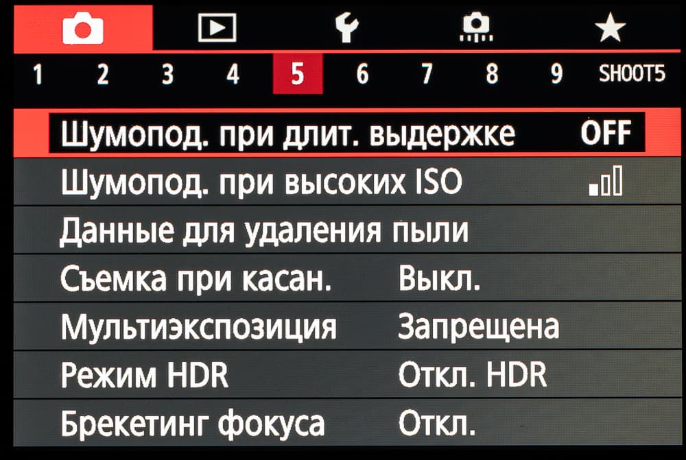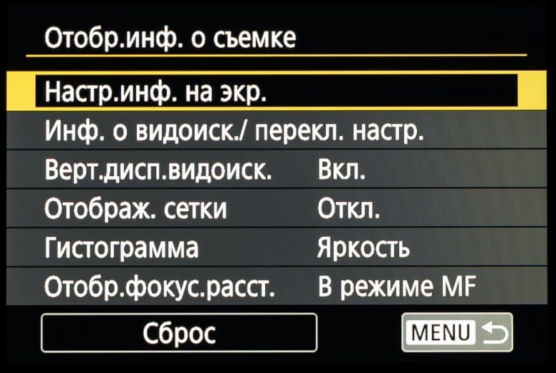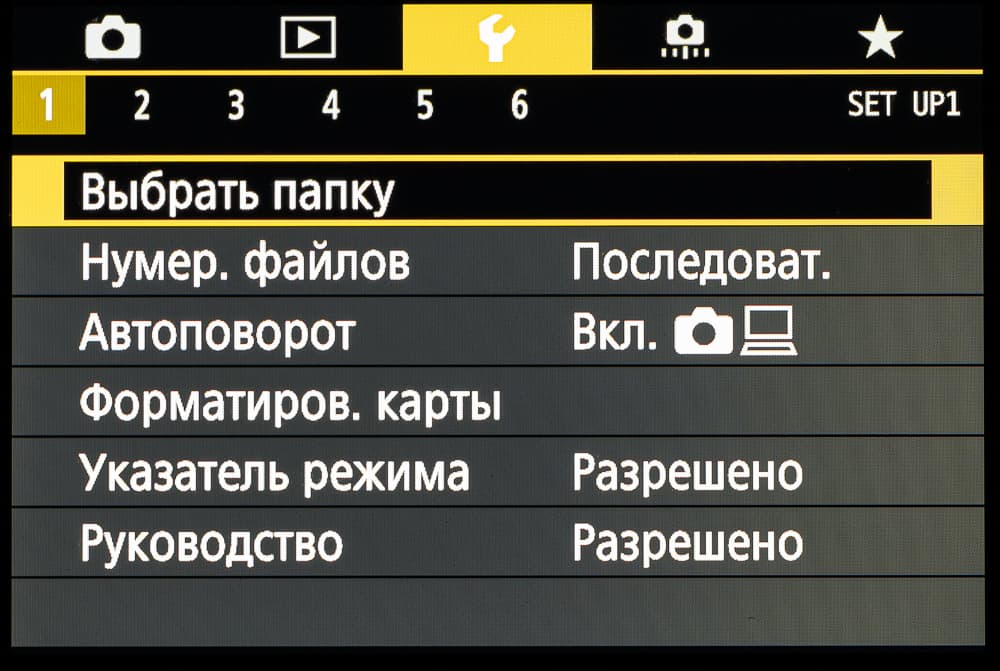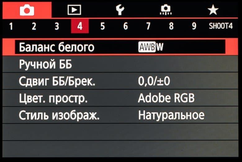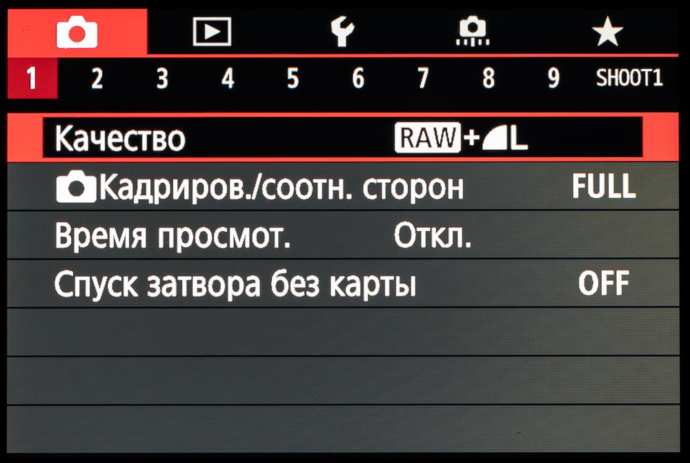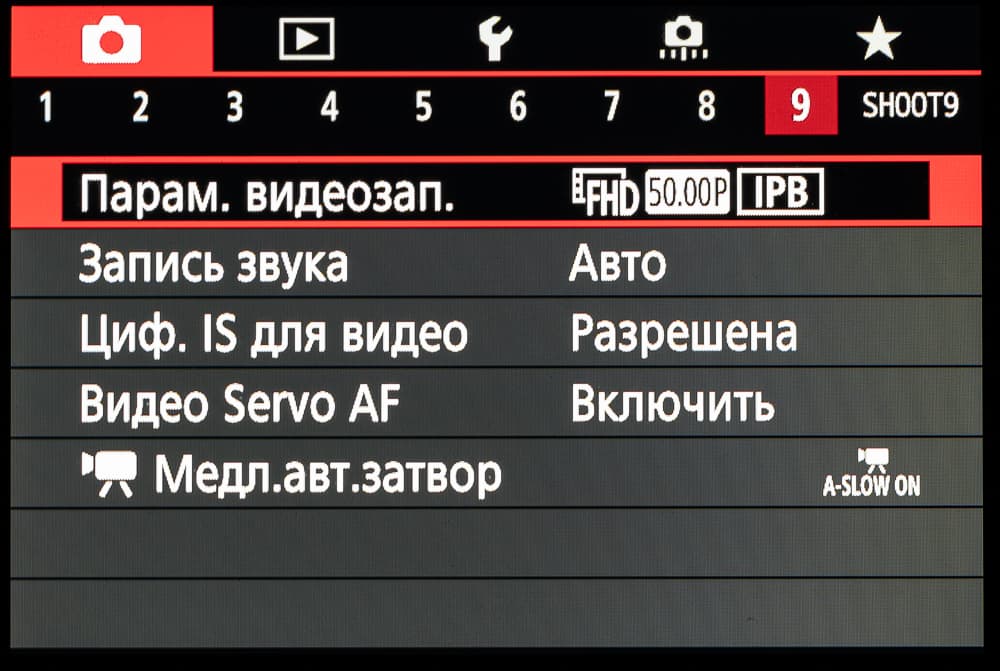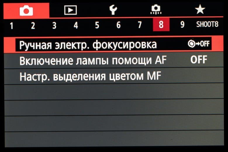 Как и всегда у Canon, меню организовано удачно, и работа с ним не требует долгого освоения. Мы не станем подробно рассматривать все закладки и пункты, а просто приведем максимальное количество скриншотов, которые помогут составить представление о меню.