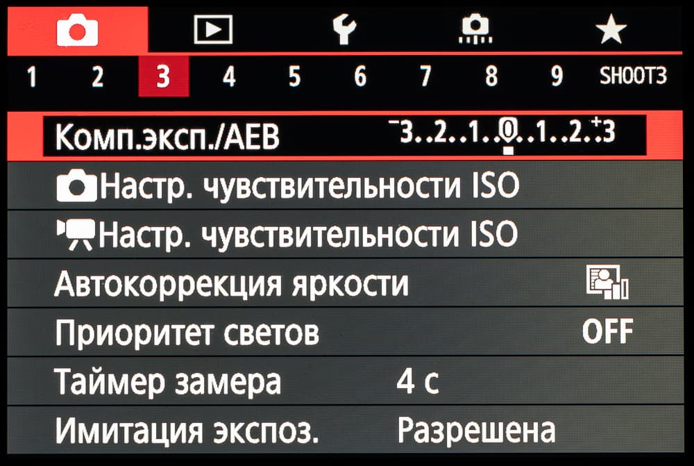 | Экспокоррекция | ±3 EV с шагом ⅓ или ½ EV |