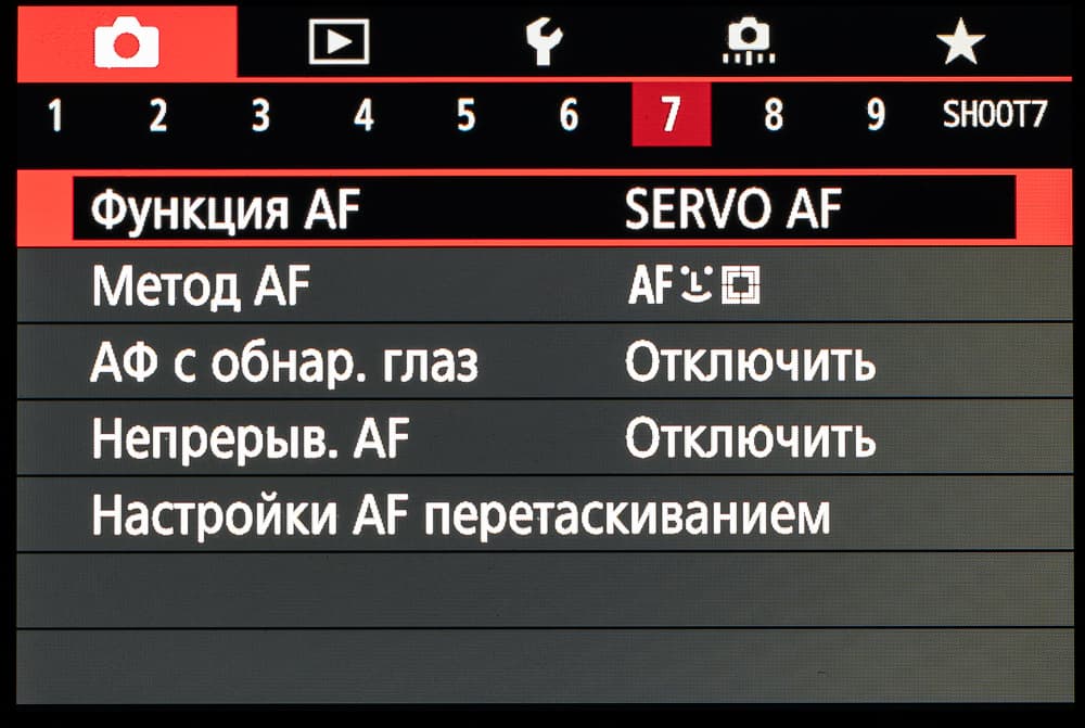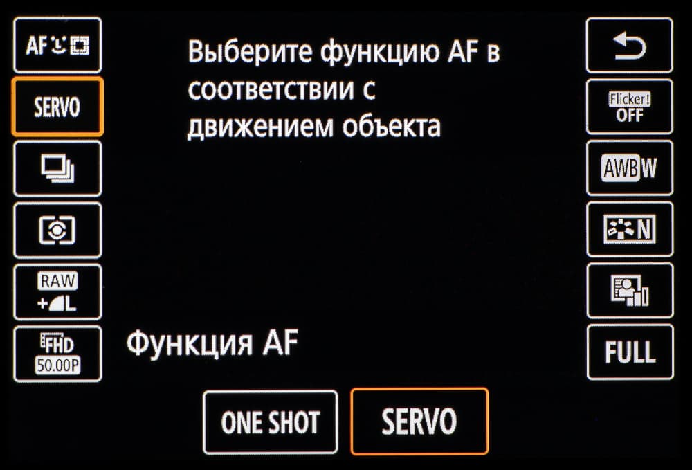 - однокадровая или следящая автоматическая фокусировка (в зависимости от динамики сцены),