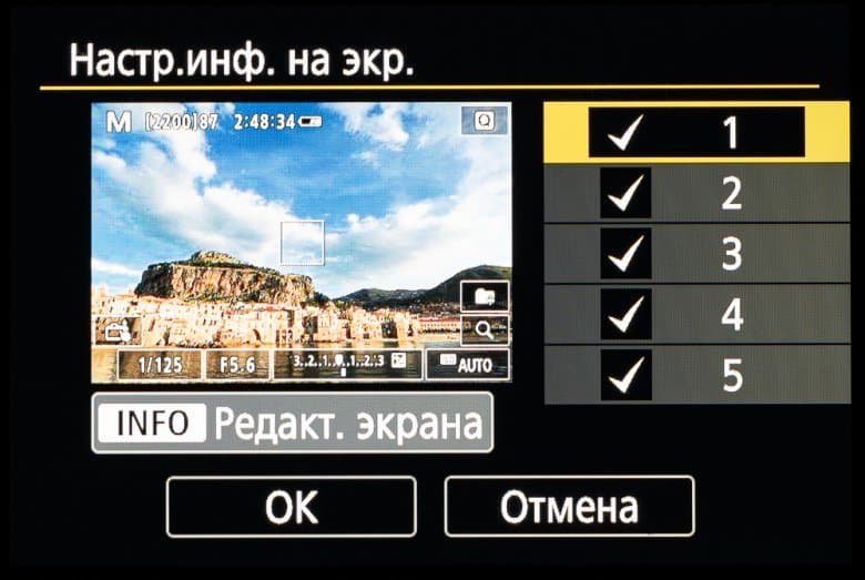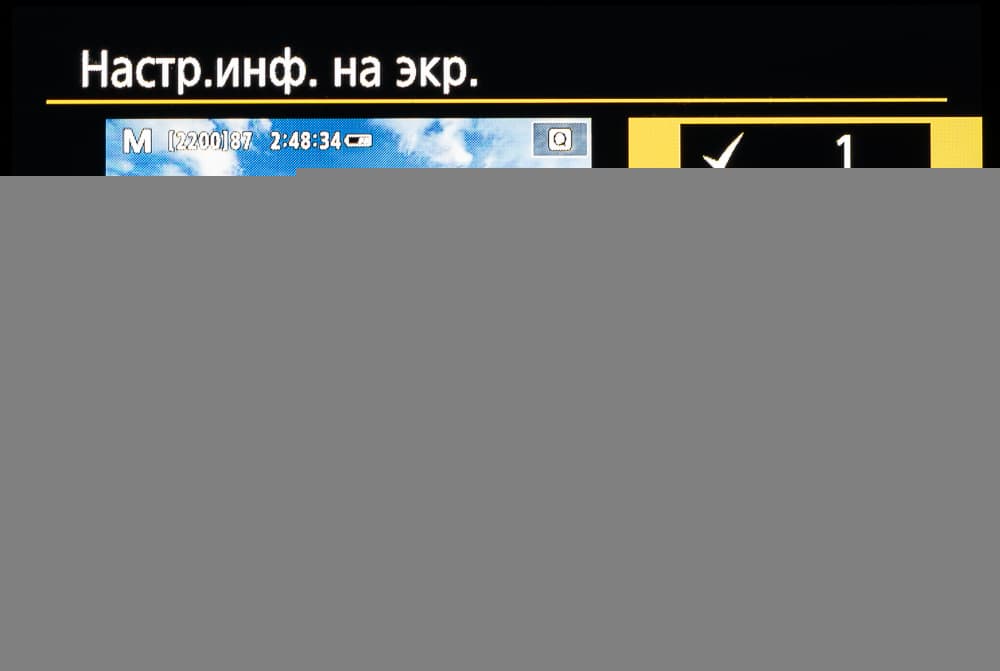 Меню быстрого доступа активируется нажатием кнопки Q/Set в центре многопозиционного переключателя на задней панели аппарата. Это весьма удобный способ установить все нужные параметры с минимальной задержкой при съемке.