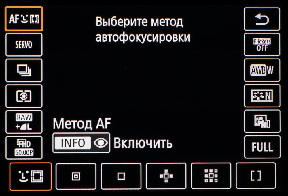 | Автофокусировка (АФ) | 4779 зон, Dual Pixel CMOS AF с покрытием 88% кадра по горизонтали и 100% по вертикали |