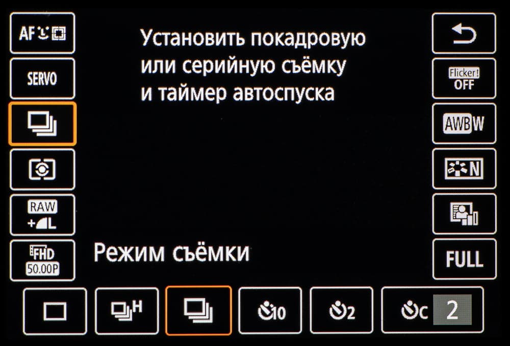 - Буфер кадров до 50 RAW; JPEG — до заполнения карты памяти