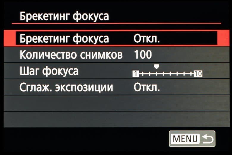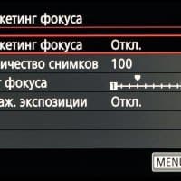 | Экспобрекетинг | 2, 3, 5 или 7 кадров; ±3 EV с шагом ⅓ или ½ EV |