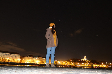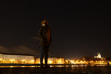 Режим «Портрет на фоне звездного неба» работает интересно. Правда, без вспышки повышается вероятность смаза и возникает замыливание фигуры человека, а со вспышкой вокруг нее появляется неестественная кайма.