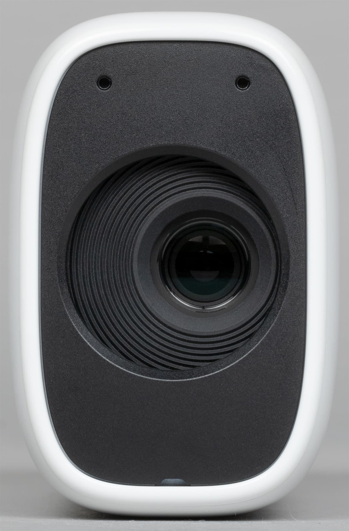 Спереди видны объектив и два отверстия микрофонов для записи видео со звуком.