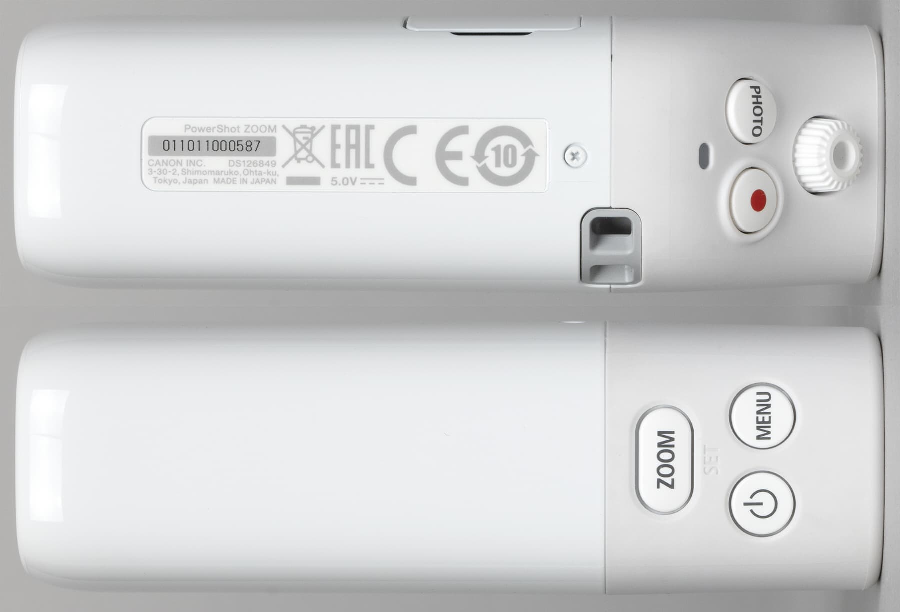 Органы управления сосредоточены в задней, обращенной к пользователю части устройства. Предполагается, что оперировать ими следует при помощи большого и указательного пальцев правой руки, удерживающей Canon PowerShot Zoom.