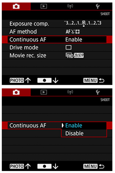 | Режимы фокусировки | однокадровая для фото, следящая непрерывная для видео |