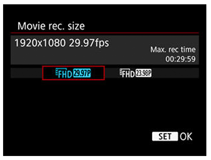 | Разрешение и длительность записи видео | Full HD 1920×1080 при 29,97/25/23,98p — до 9 мин. 59 сек. |