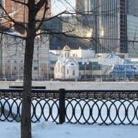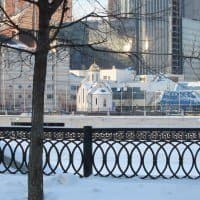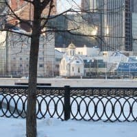 При минимальном ФР заметно, что АФ «привязан» к ближайшему плану: в зону резкости попадает парапет набережной и ствол дерева на аналогичной дистанции от устройства. Поскольку в устройстве нет ручной фокусировки, нет и возможности поправить АФ, переместив его на нужный объект. При 400 мм заметно «гуляние» зоны резкости, которое, правда, в значительной мере маскируется артефактами сжатия и шумоподавления. «Звенящей» резкости добиться нельзя, и виной тому совокупное влияние многих факторов. При эквивалентном ФР 800 мм (это уже цифровое увеличение оптического отображения сцены при 400 мм) автоматика явно затрудняется с выбором фокусировочной зоны, которая постоянно перемещается. Доподлинно указать на истинного виновника весьма сложно, поскольку акварелизация картинки и ее размытие вносят свою лепту в итоговый результат.