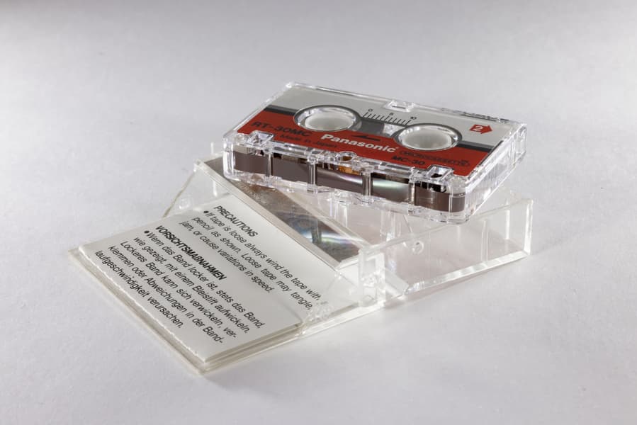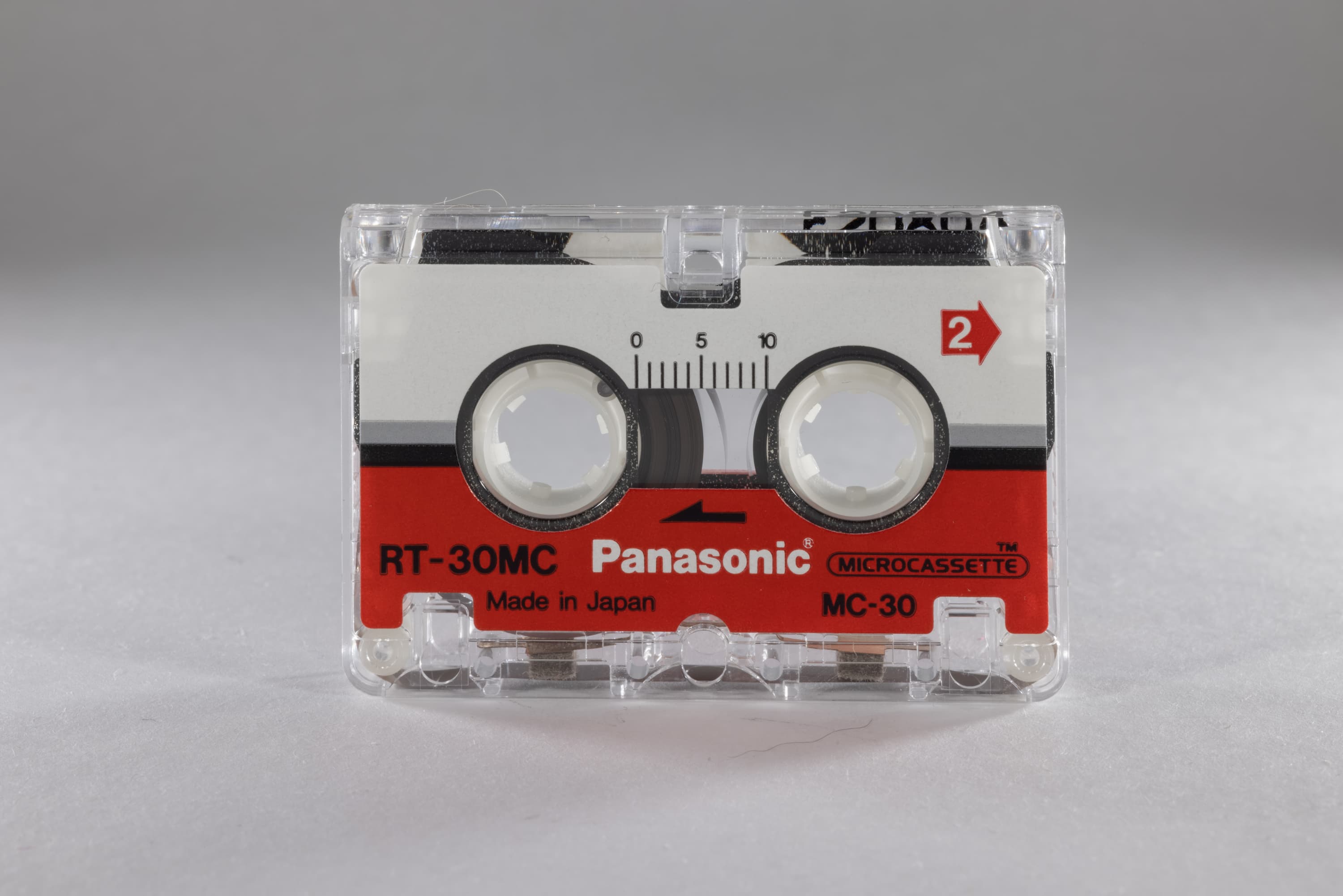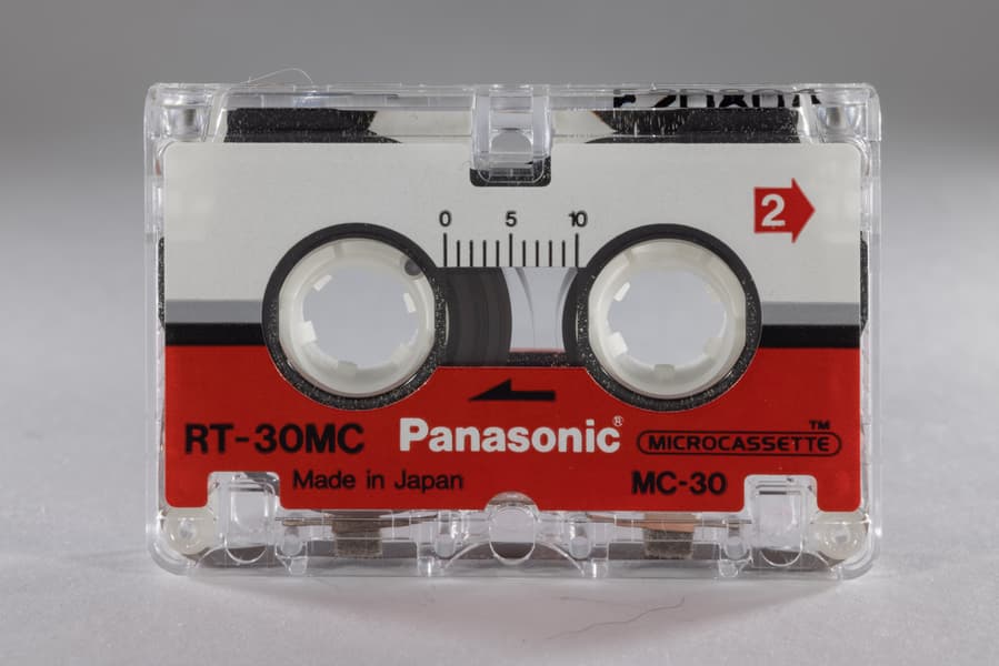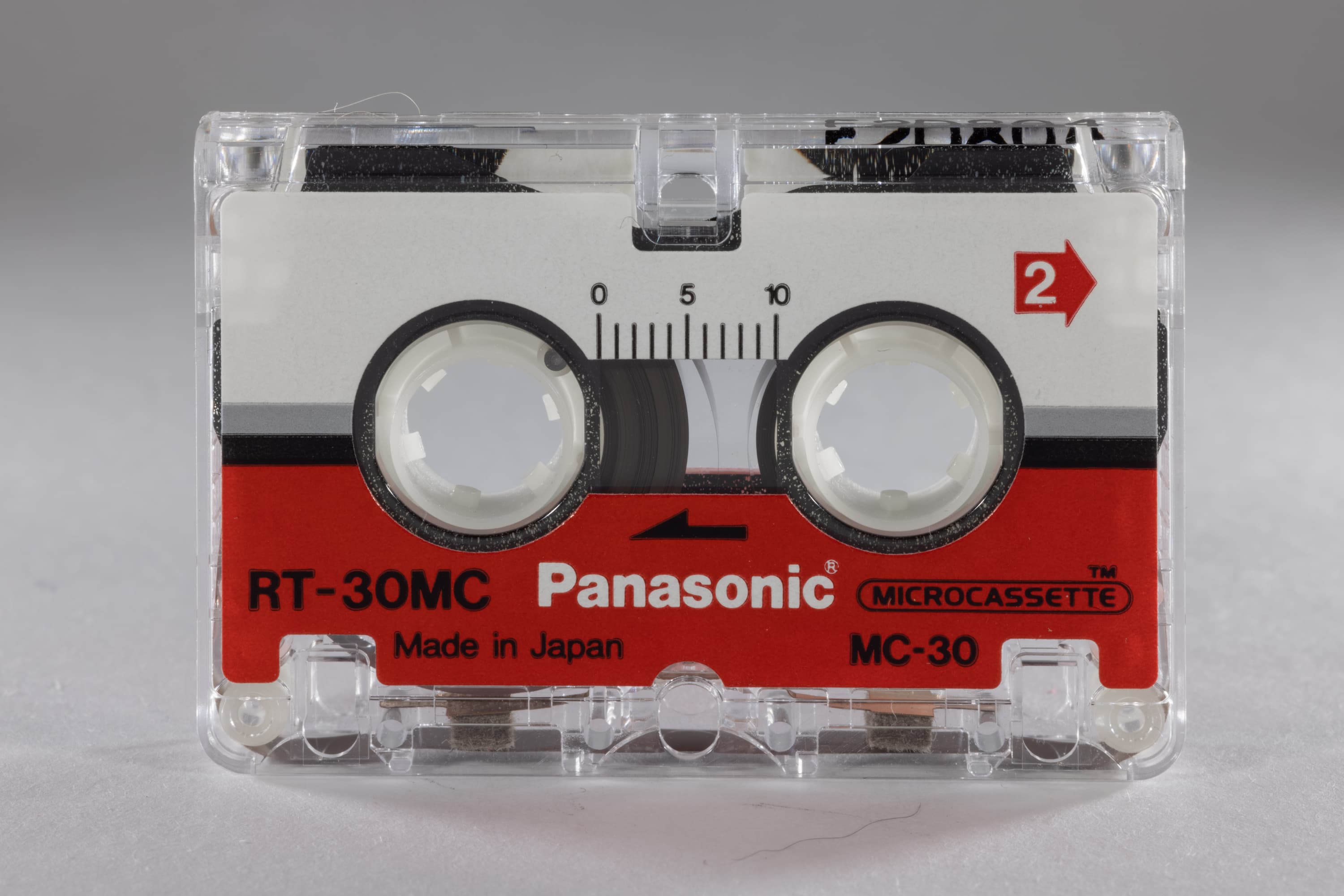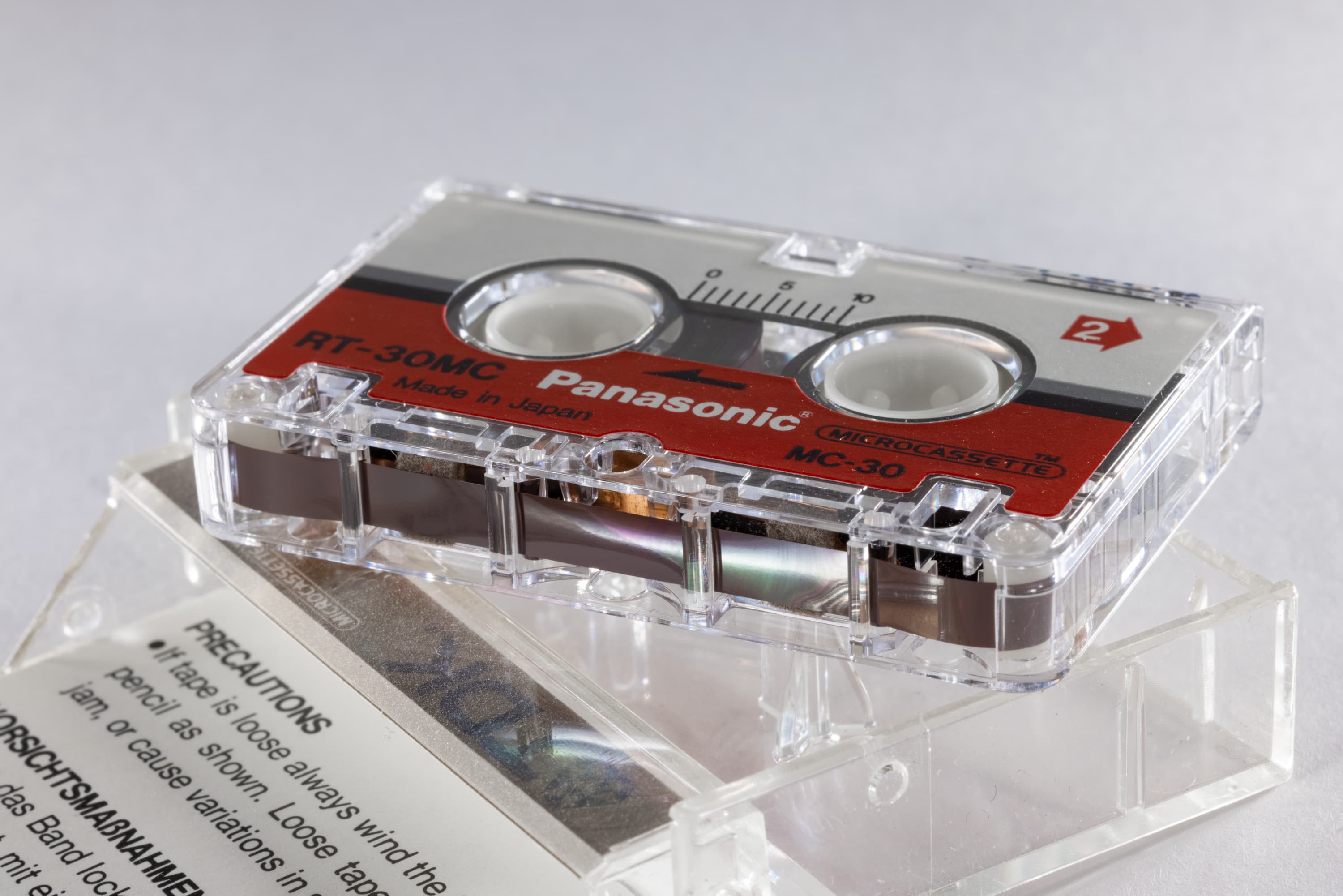 Старинная микрокассета для диктофона с наружным футляром помещается в кадре без проблем, равно как и ее изображение «в лоб» (благо размер не слишком мал).