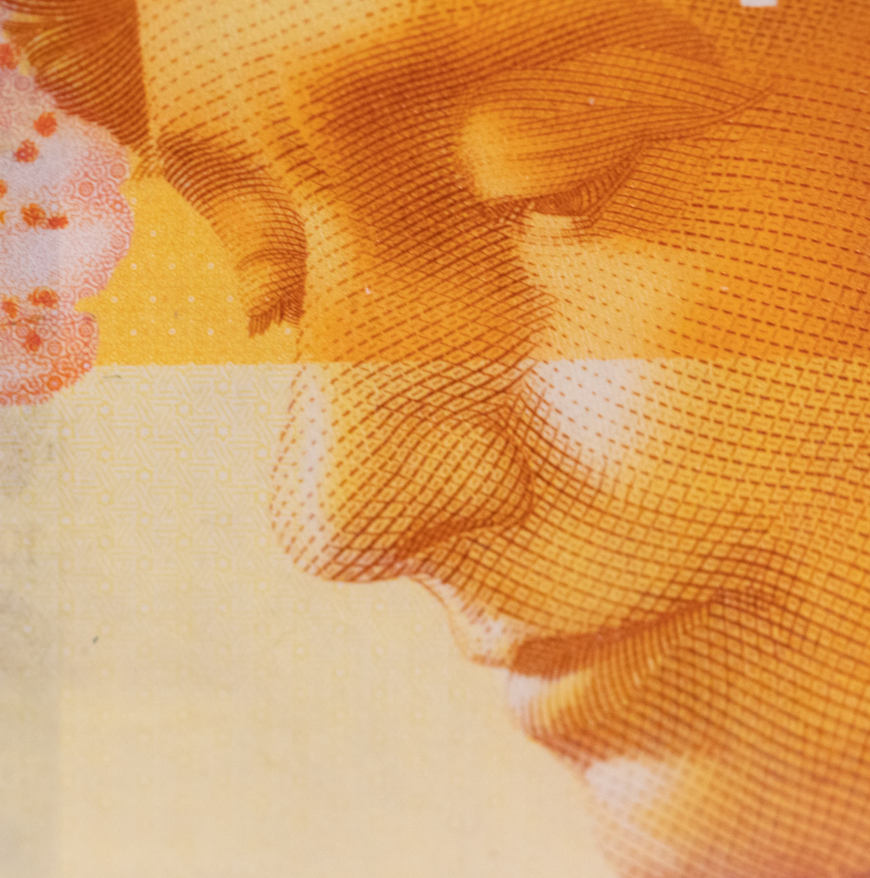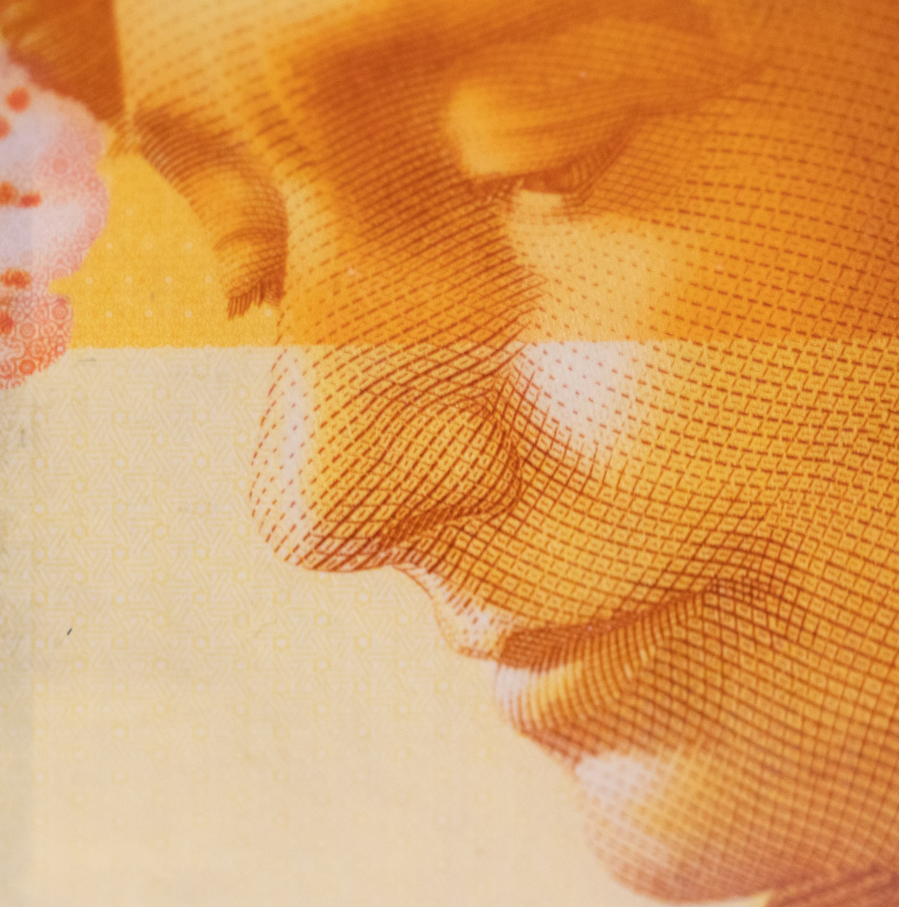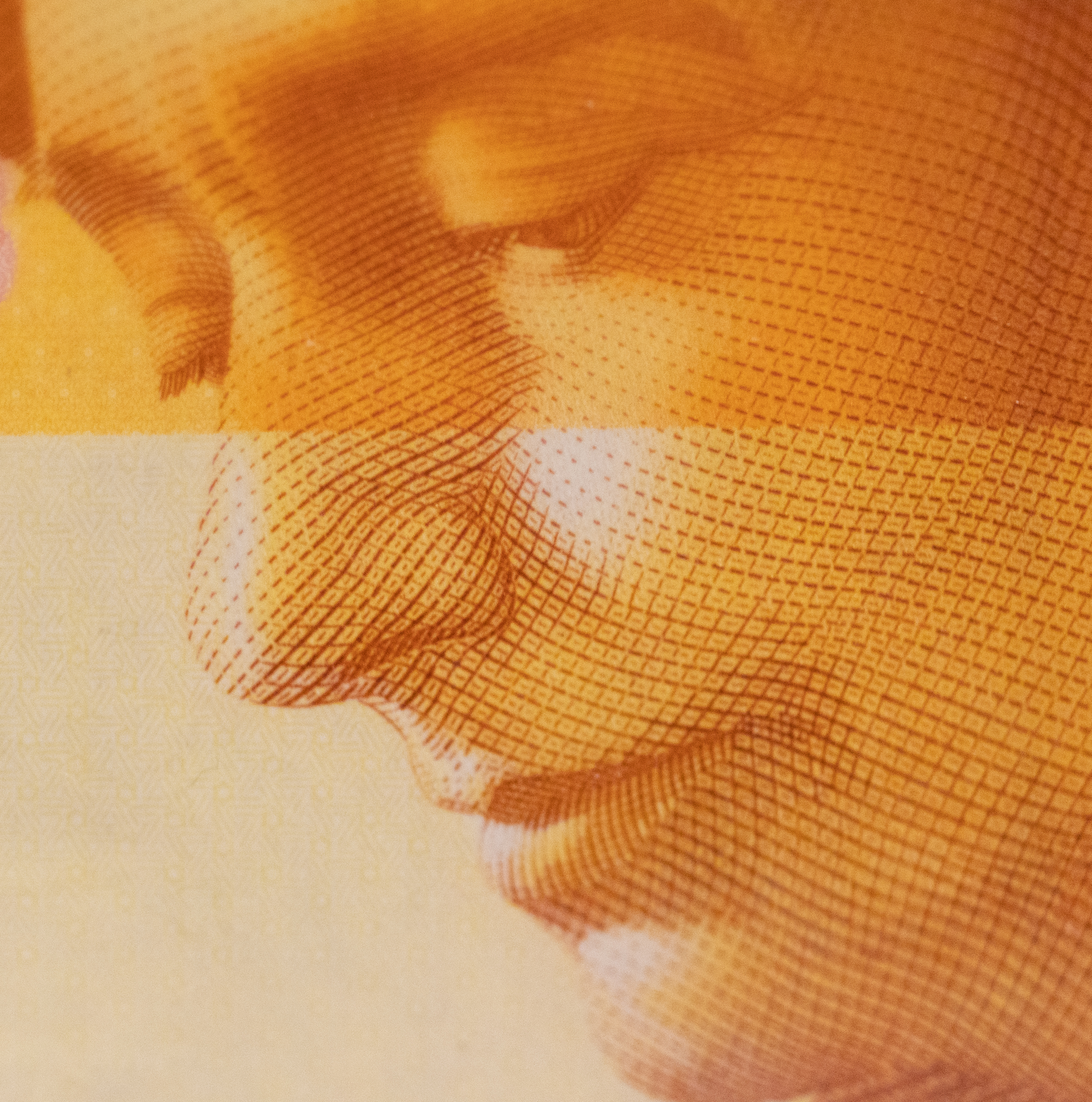 Производитель обещает эффективность стабилизации в 5 ступеней. Мы решили проверить, насколько эффективна оптическая стабилизация у Canon RF 85mm f/2 Macro IS STM на макродистанции, поскольку это качество представляется нам наиболее важным. Съемка банкноты проводилась при ISO 800 в режиме приоритета выдержки (Tv). Мы начинали с 1/80 с и увеличивали длительность экспозиции вдвое от кадра к кадру. Из-за естественного движения рук, держащих камеру, изображение смещалось внутри поля зрения. Поэтому мы решили обрезать фото, чтобы точнее ориентировать снимаемый рисунок.