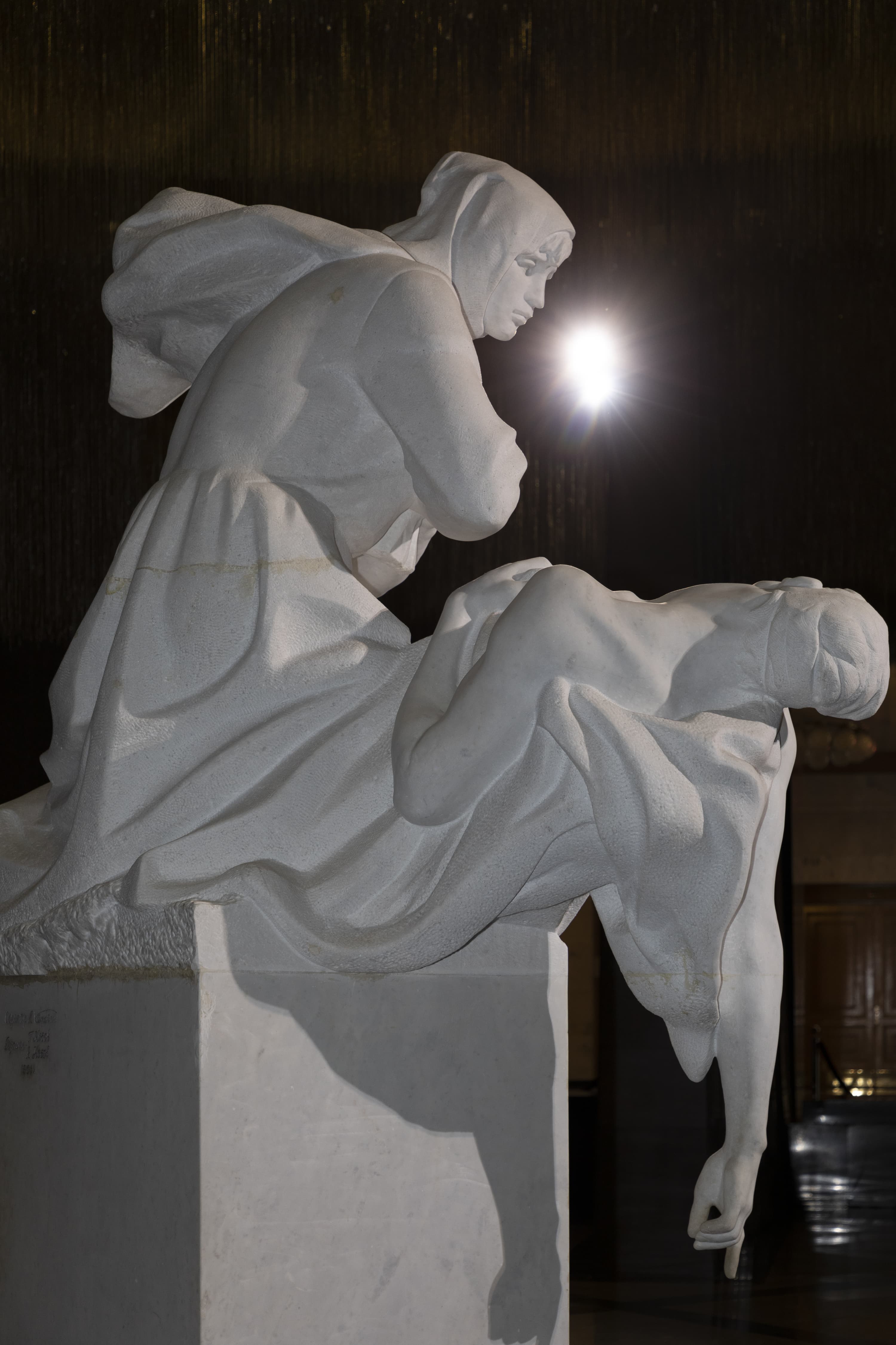 Воспользуемся теперь Canon Speedlite 470EX-AI. Правда, светлого потолка в музее Великой Отечественной войны не предусмотрели (он здесь черный), но пыхнуть «в лоб» можно всегда.