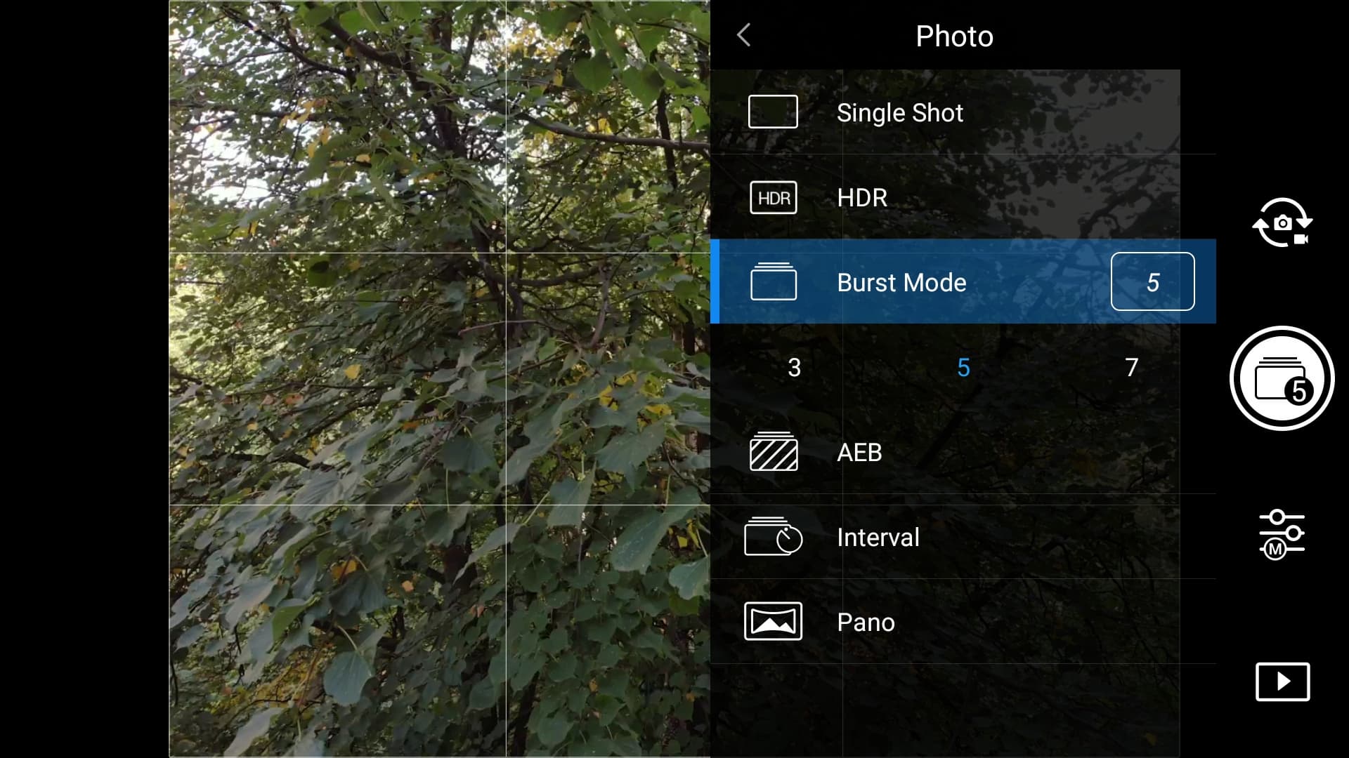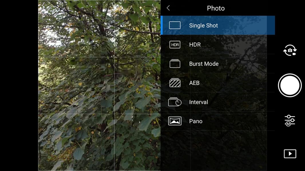 | Режимы фотосъемки | одиночный снимок; расширенный динамический диапазон (HDR); съемка серией по 3, 5 или 7 кадров; автоматический экспобрэкетинг по 3 или 5 кадров с шагом в 0,7 EV; интервальная съемка (таймлапс) по 2, 3, 5, 7, 10, 15, 20, 30, 60 с; автопанорамы 3×1; 3×3, горизонтальная 180°, сферическая |