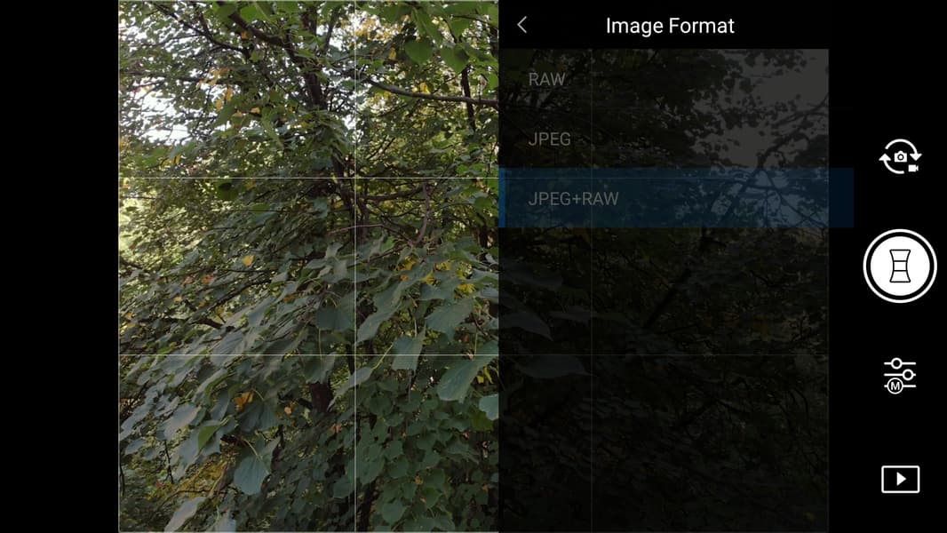 - изображения во всех режимах фотографирования можно сохранять в JPEG и DNG (RAW)