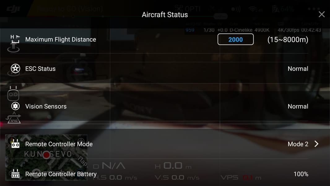 | Максимальная скорость полета (на уровне моря в штиль) | режим S: 68,4 км/ч (19 м/с); режимы P и Wi-Fi: 28,8 км/ч (8 м/с) |