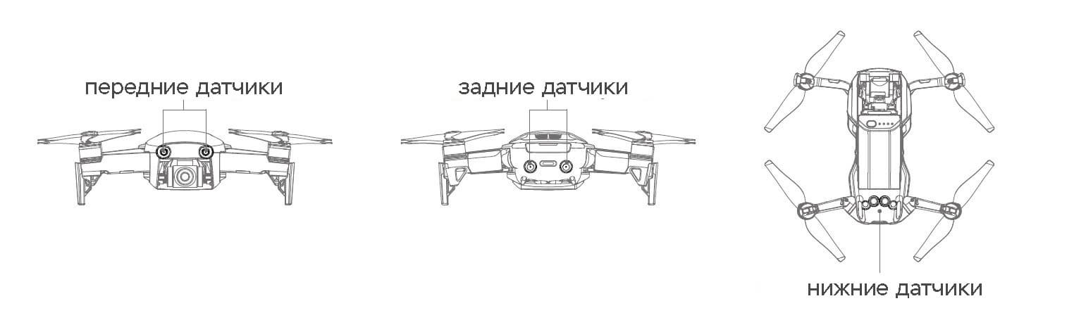 | Нижние датчики | диапазон высот: 0,1—8 м; рабочий диапазон: 0,5—30 м |