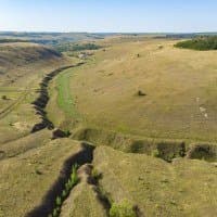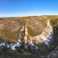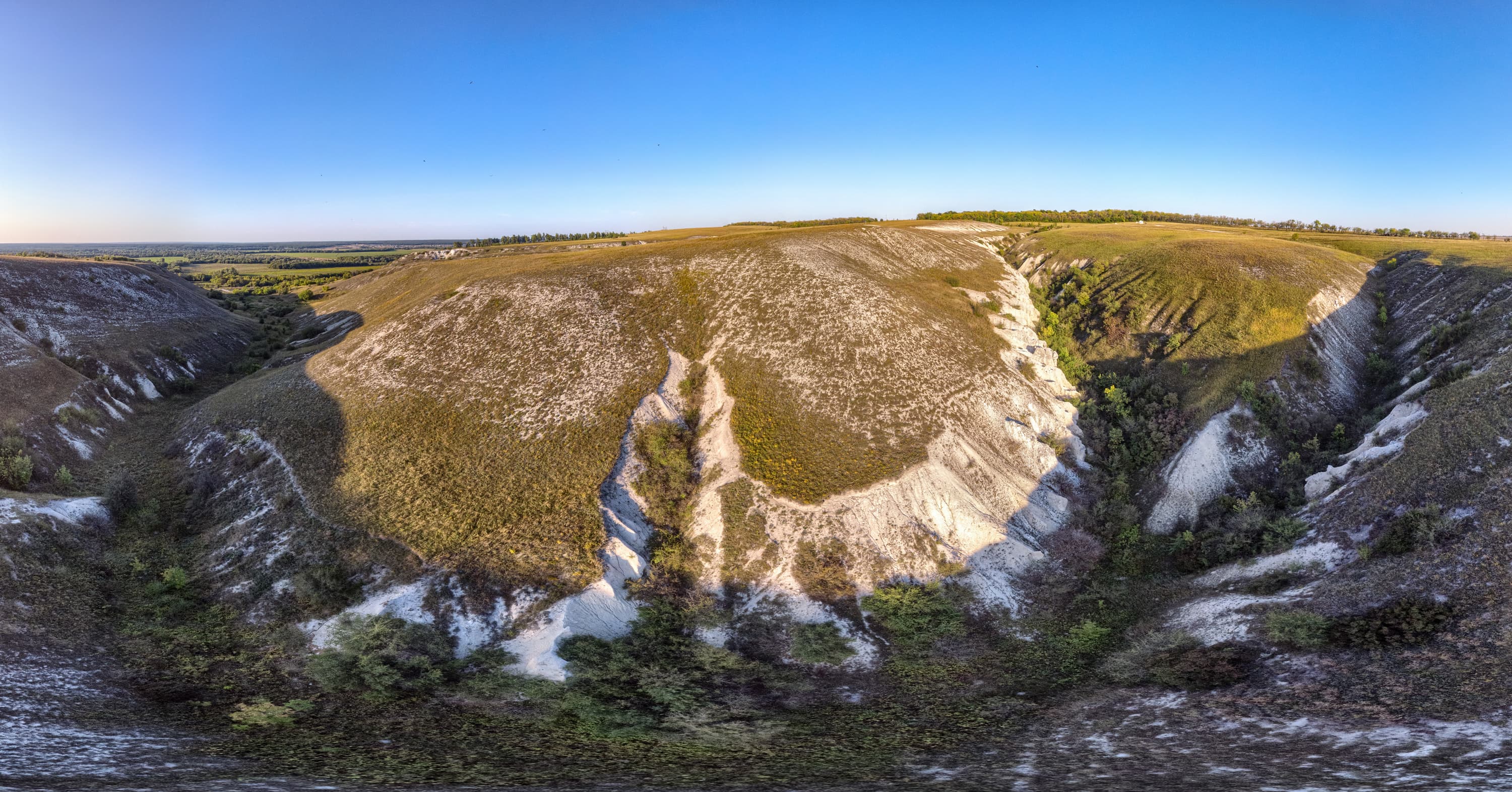 Это самая сложная из программ, если принять по внимание технологию съемки. Сначала дрон удаляется от объекта вверх, затем снимает сферическую фотопанораму из 25 кадров, сшивает ее в картинку стиля «маленькая планета» и напоследок комбинирует клип и фото в одну видеопоследовательность. Это программа — единственная из всех, которая имеет ограничение по разрешению видео — Full HD 1920×1080 30p. Урывский меловой каньон. Село Селявное. Воронежская обл.