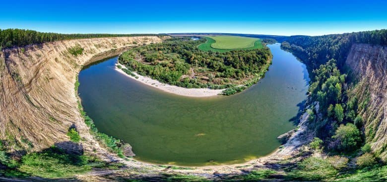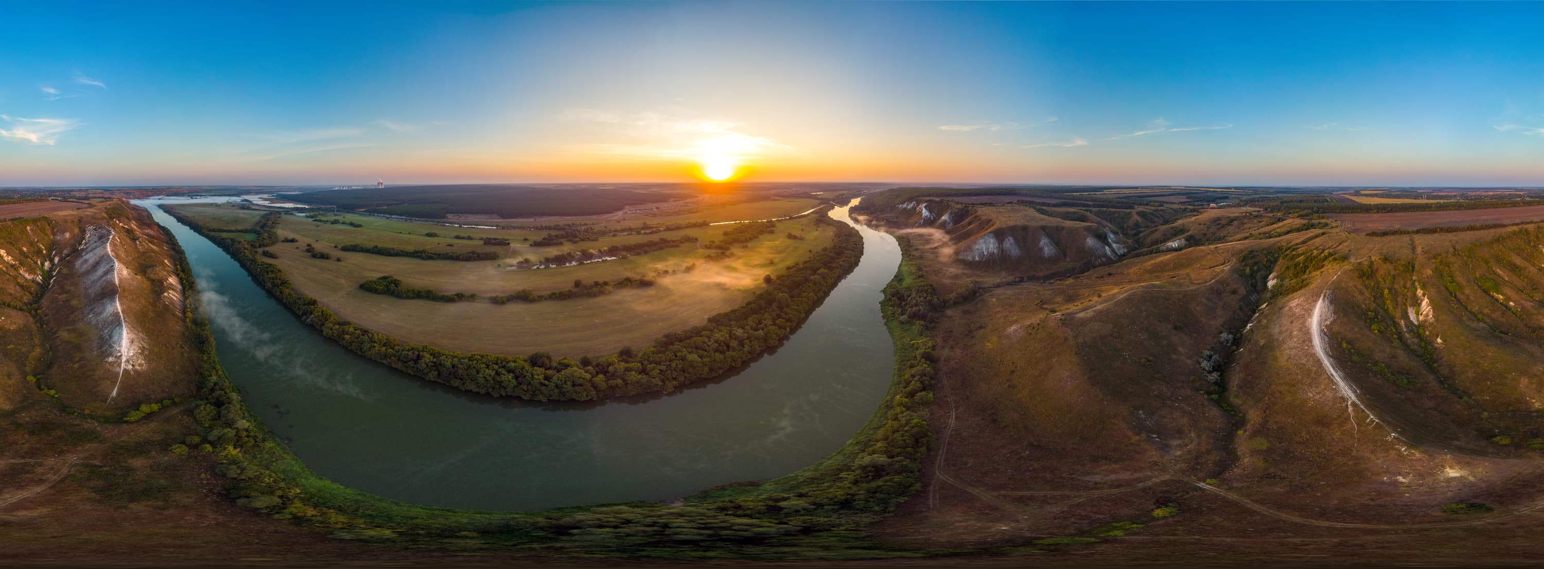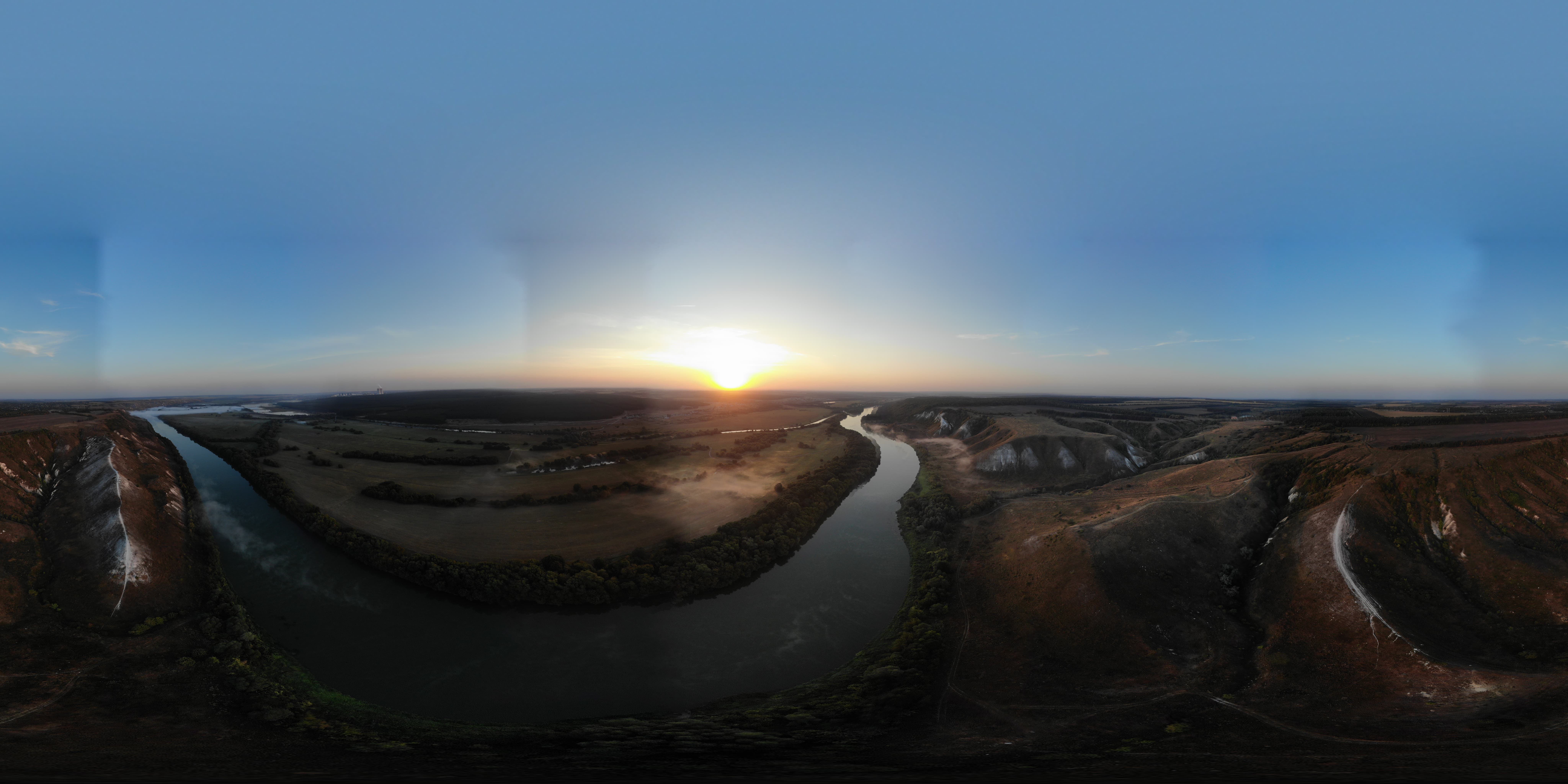 Главная беда панорамных изображений, сшитых автоматикой DJI Mavic Air, состоит в скверной подгонке кадров по тональной плотности. Обратимся к первому примеру. Это долина Дона у села Сторожевое (Острогожский район Воронежской области).