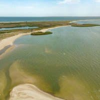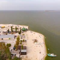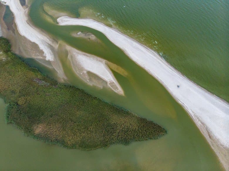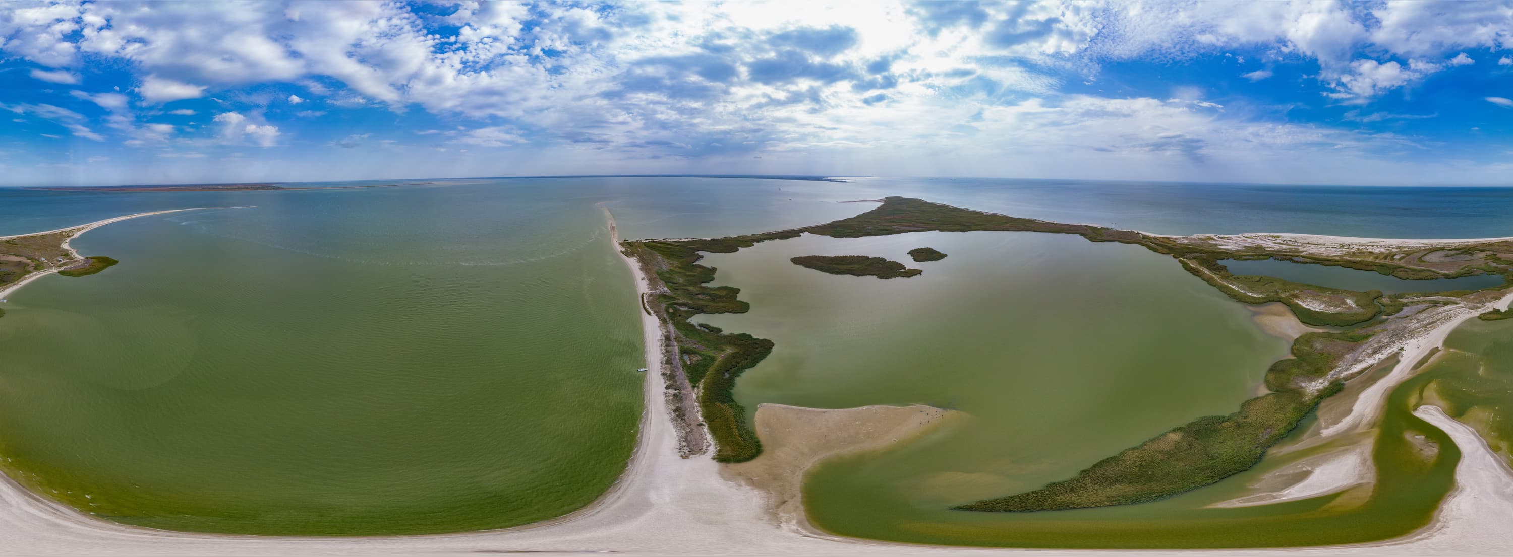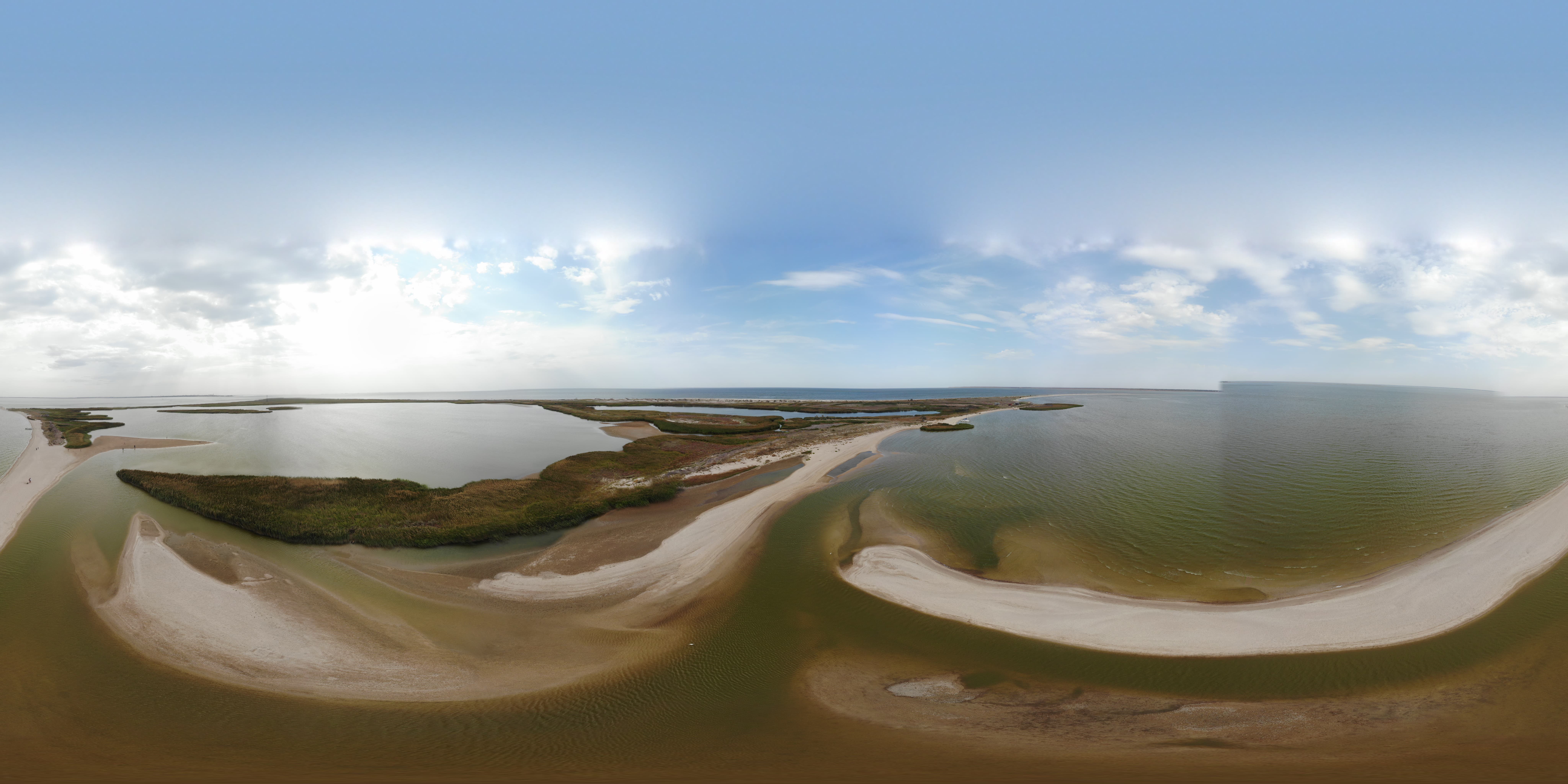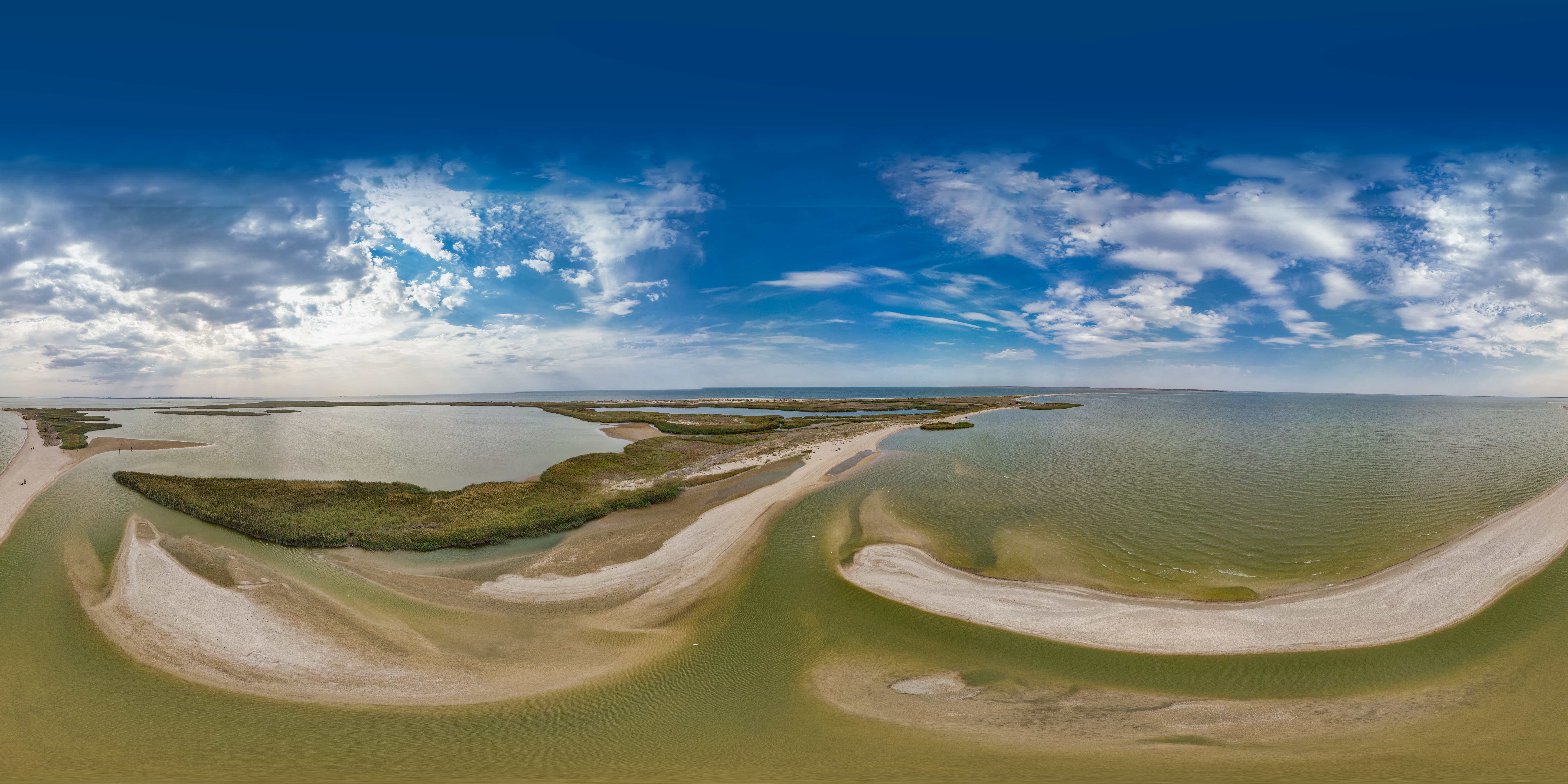 Еще один пример — Зеленый остров, или остров Семи ветров. Это отделенная водой Азовского моря часть Ейской косы (Краснодарский край). Первая картинка — автопанорама из Mavic Air, вторая — «проявленные» в Adobe Camera RAW файлы, сшитые затем при помощи Kolor Autopano Giga.