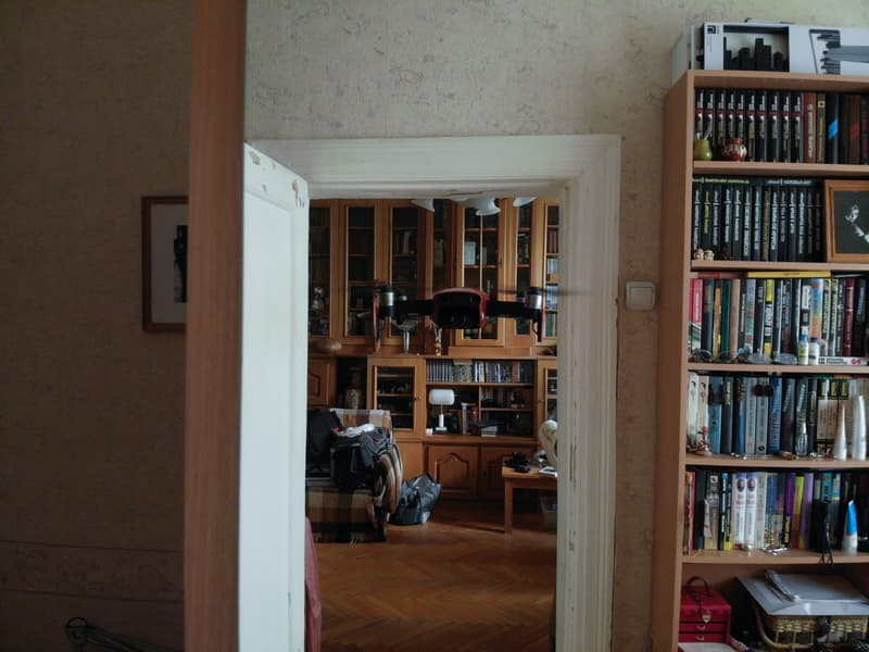 Вновь, как и на других снимках, приведенных выше, хорошо заметна бочкообразная дисторсия. Параллельно выясняется интересная подробность: автоматика запускает экспобрэкетинг, не пытаясь изменять значение ISO, а управляя только длительностью выдержки. Одновременно выясняется, что подвес обеспечивает адекватную стабилизацию при выдержке 1/4 с (3 ступени экспозиции).