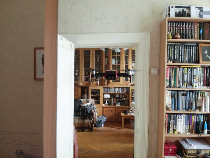 Дрон оснащен объективом с фиксированными фокусным расстоянием 4 мм (это 24 мм в эквиваленте полного кадра), фиксированной диафрагмой F2,8 (на самом деле, F3) и фиксированной фокусировкой (глубина резкости от 0,5 м до бесконечности), поэтому в параметрах съемки я буду указывать лишь выдержку и ISO. Все фото я привожу парами: первый вариант — внутрикамерный JPEG, второй — результат «проявки» исходников в формате Digital Negative (DNG, или RAW) с умеренной коррекцией геометрии, цветности и полутонов «по вкусу».