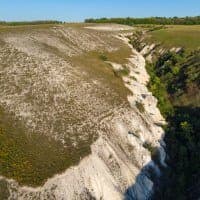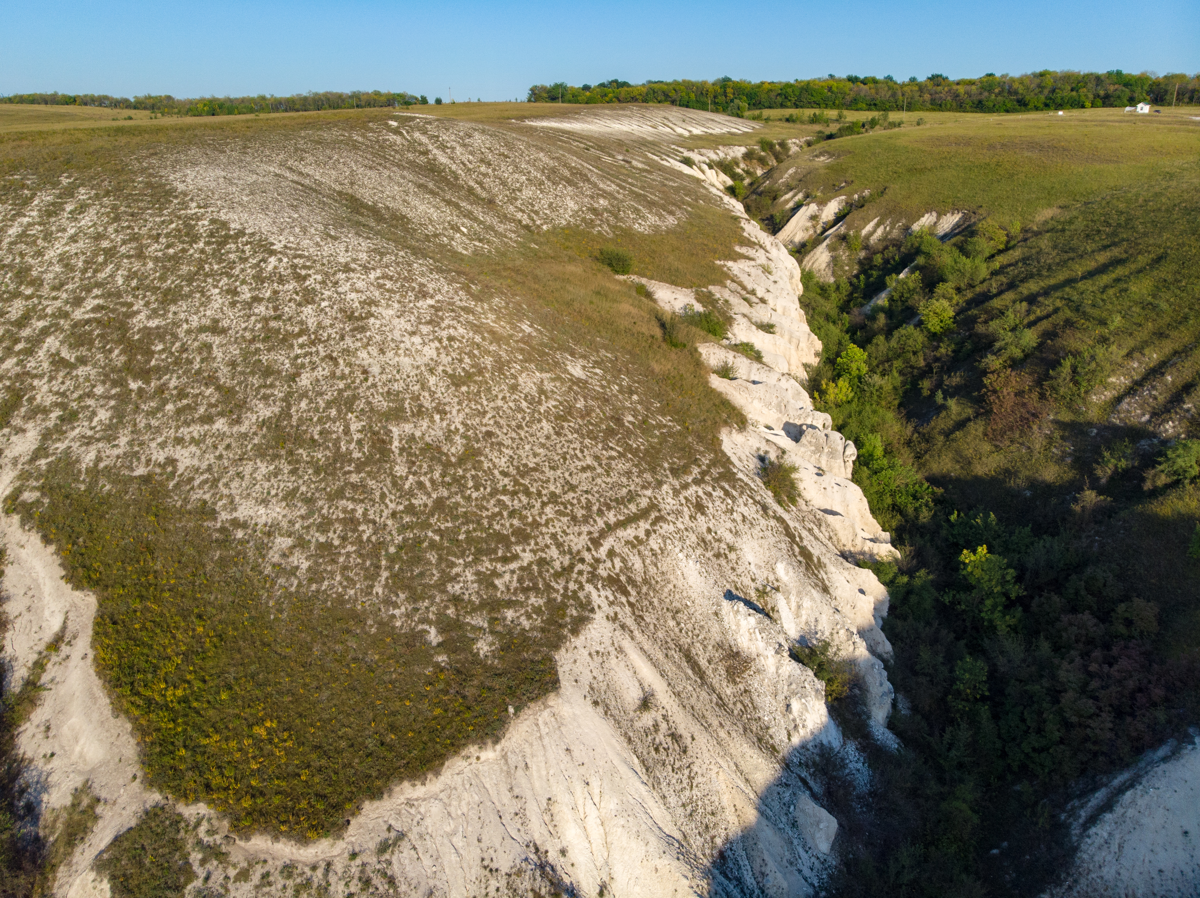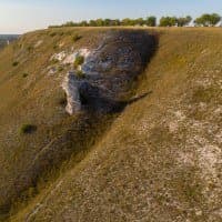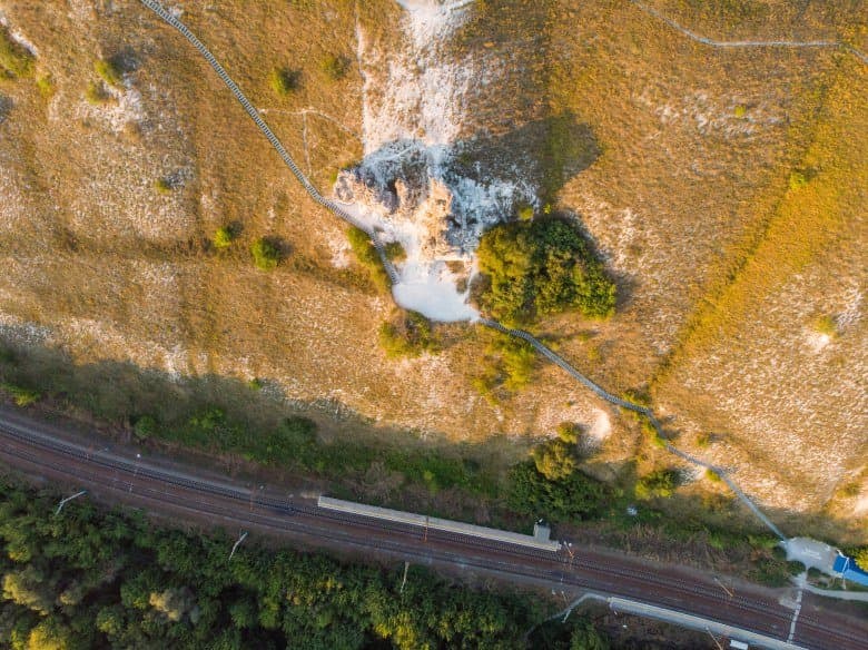После выделения объекта аппарат совершает его круговой облет, постепенно удаляясь. Урывский меловой каньон. Село Селявное. Воронежская обл. UHD 4K (3840×2160 30p).