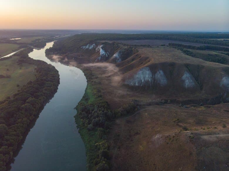 Наиболее простая, но часто востребованная программа. При ее выполнении DJI Mavic Air движется от объекта, выделенного прямоугольником на экране смартфона, одновременно немного набирая высоту. Снято в свете встающего солнца на меловой горе Острый Борок. Село Сторожевое. Воронежская обл. UHD 4K (3840×2160 30p).