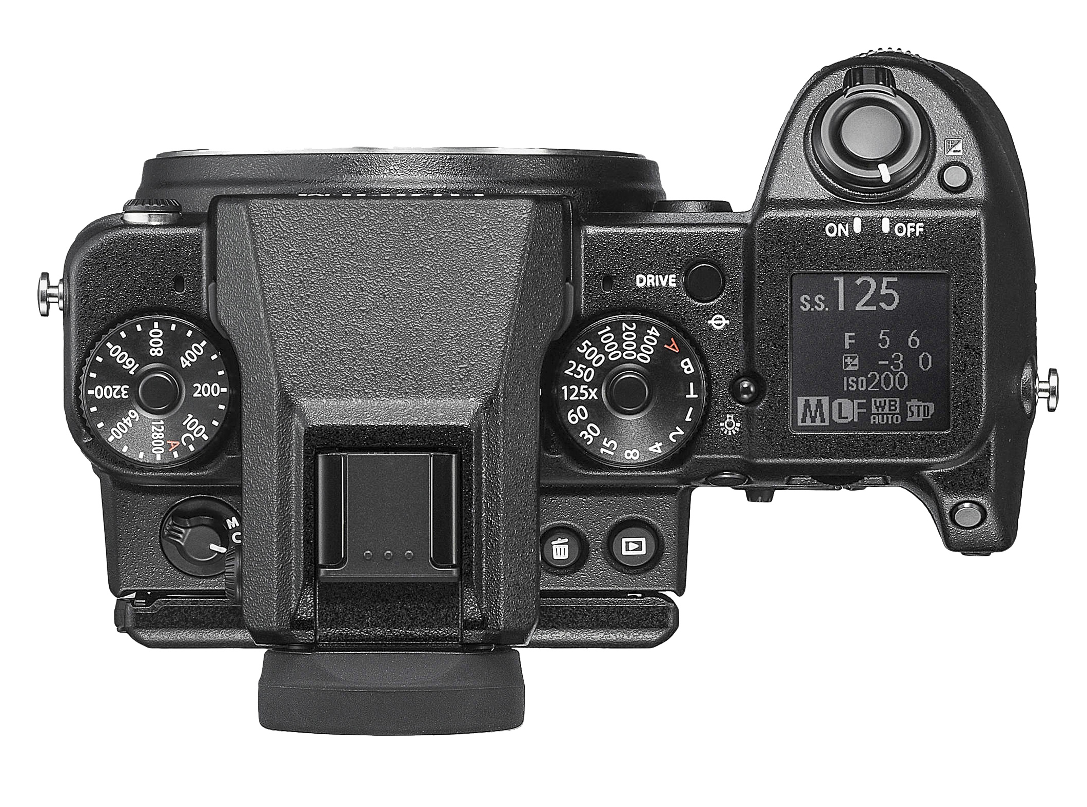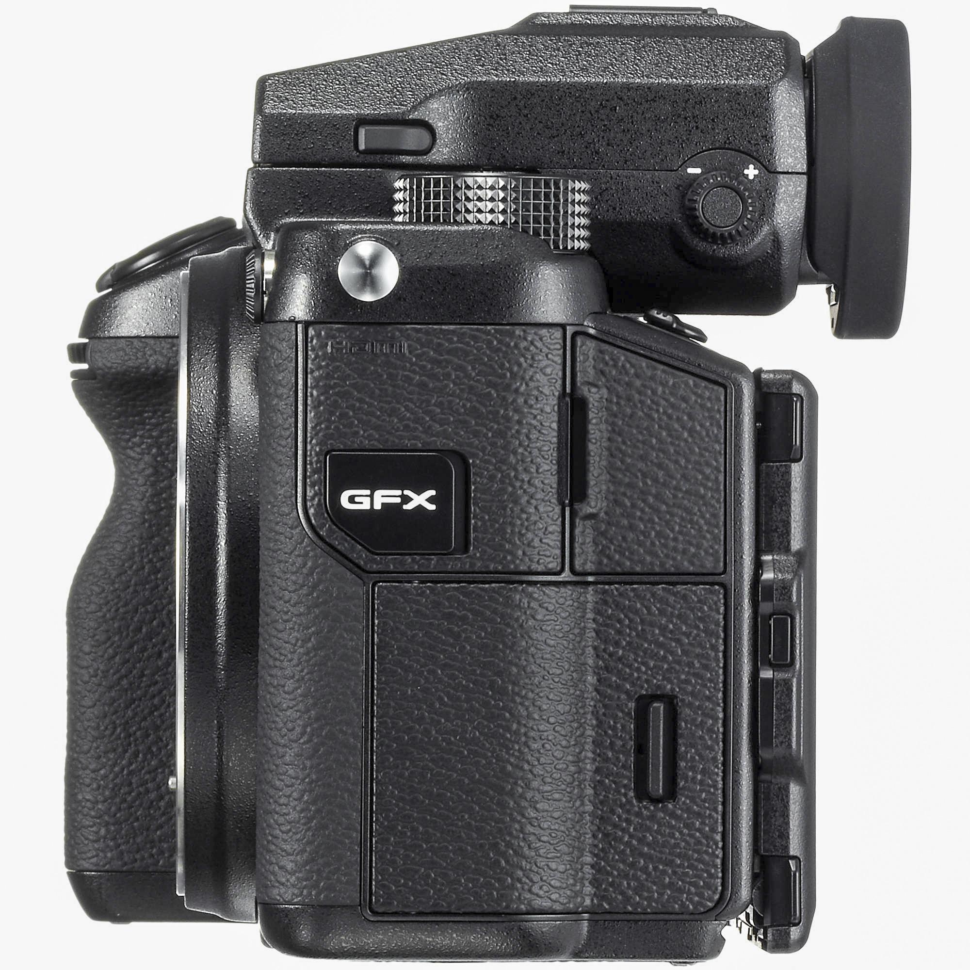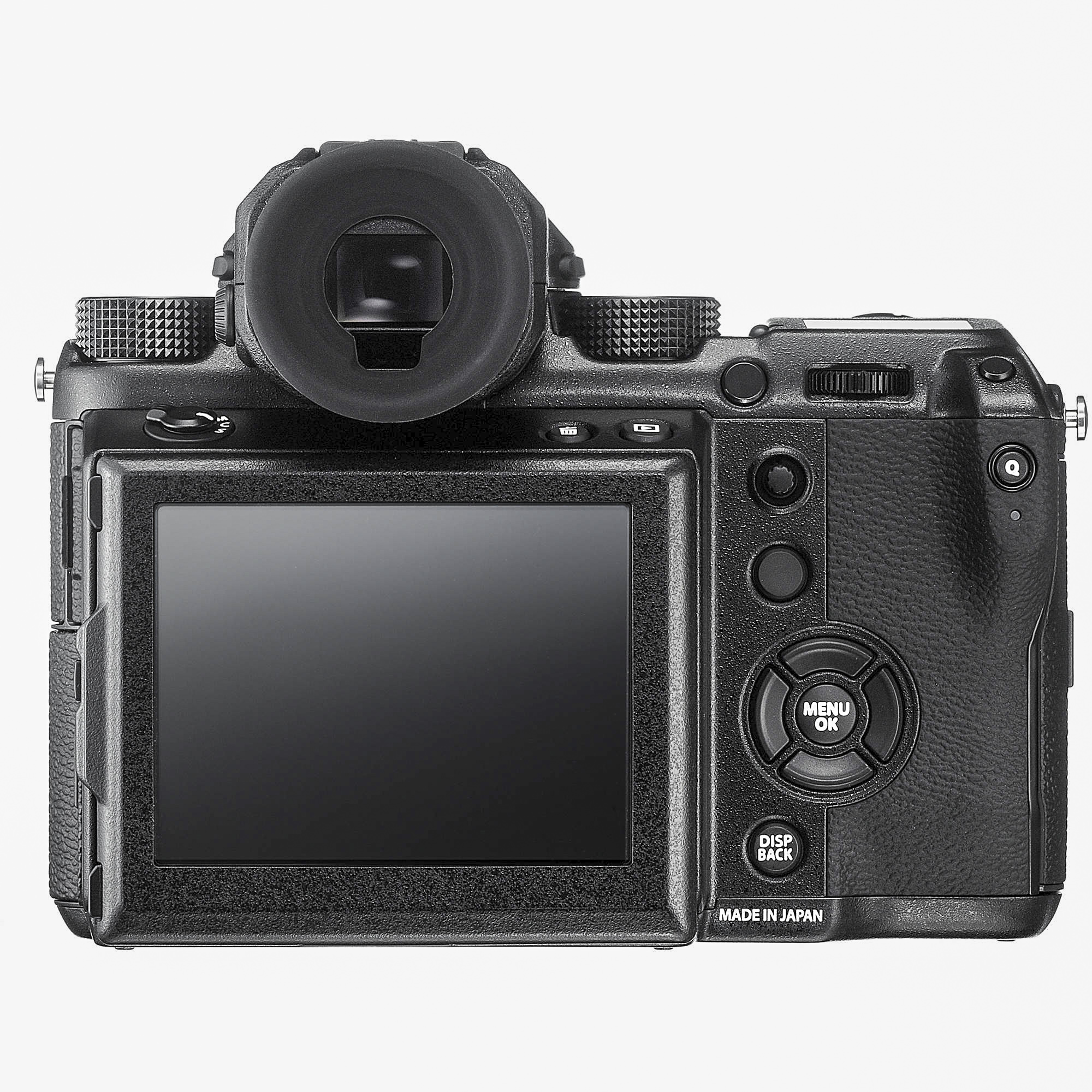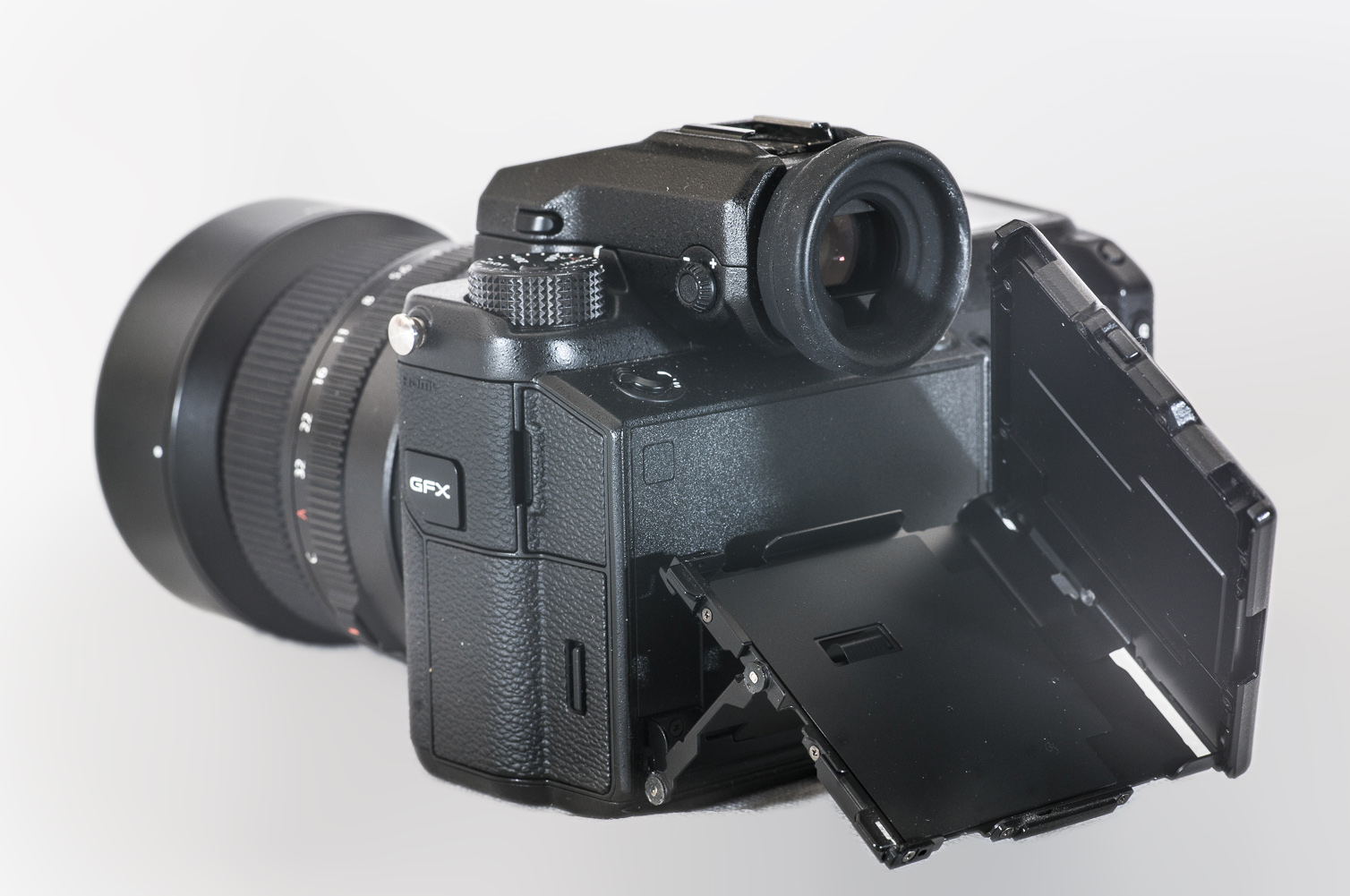 Общий план строения камеры наследует принципы, характерные для топовых моделей семейства Fujifilm X (разумеется, с поправкой на средний формат). Исключение сделано для видоискателя, который можно снимать и устанавливать на камеру по необходимости.
