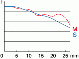 Объектив позволяет рассчитывать почти на 90-процентную разрешающую способность на полностью открытой диафрагме. При диафрагмировании вплоть до F8 резкость не меняется и составляет около 88%, хотя в центре она ощутимо выше, чем на периферии кадра, где ее значение не поднимается выше 80%. При дальнейшем уменьшении относительного отверстия разрешение начинает снижаться (до 79% при F16) и падает до 65% при F22.