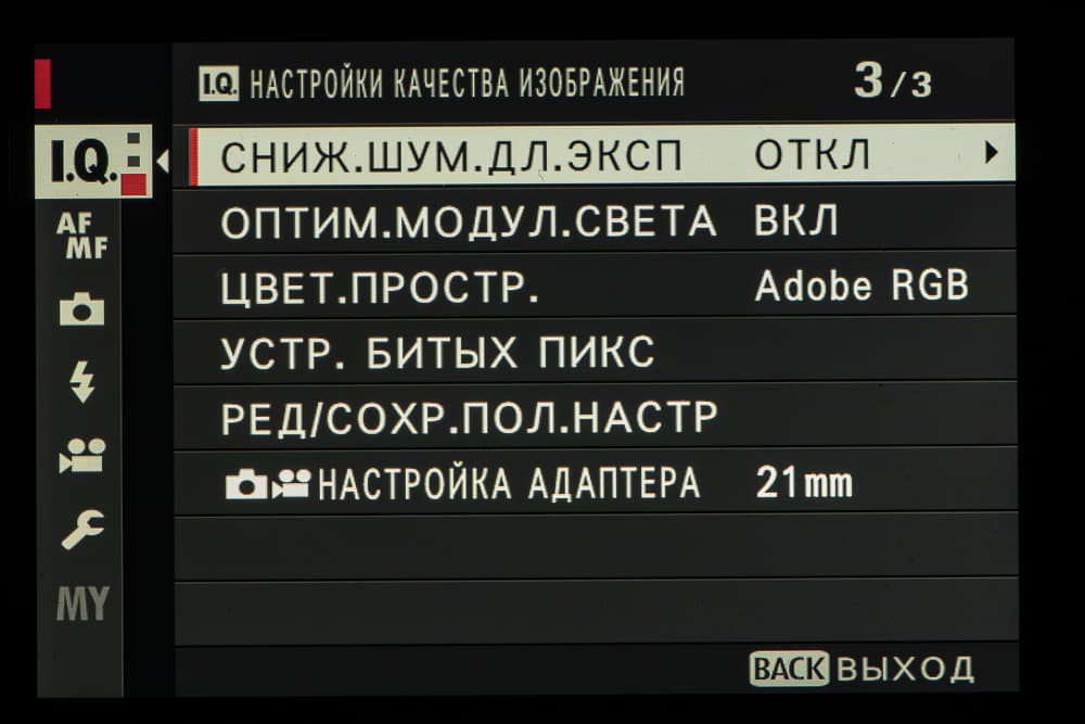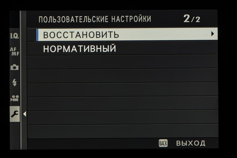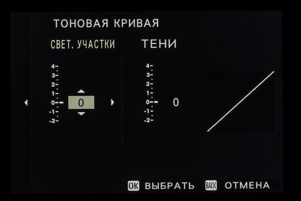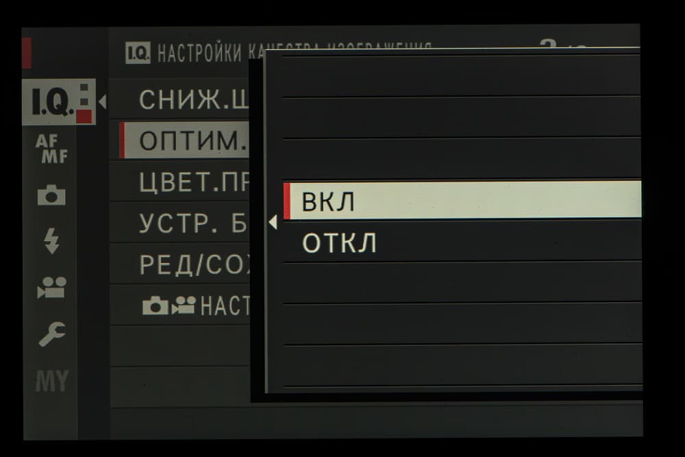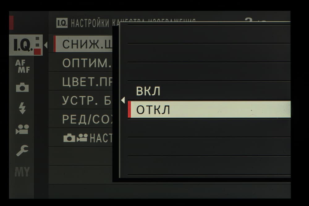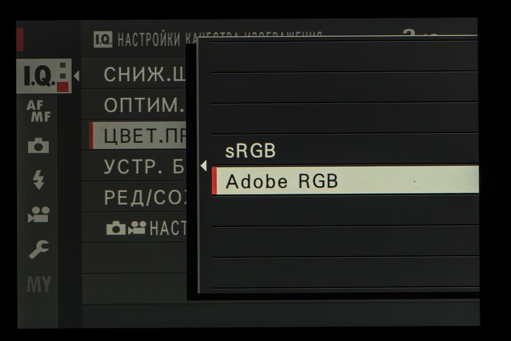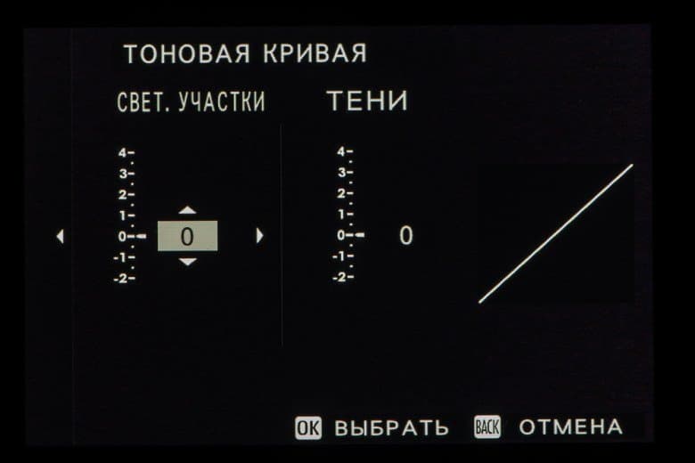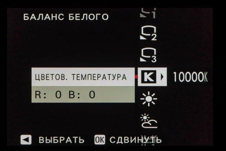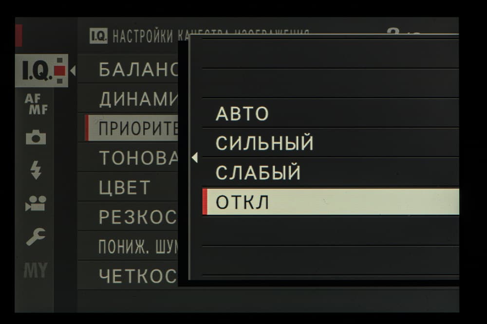 Выбор пленки желаемого типа доступен из быстрого меню. Листание производится колесом левого селектора. Эффекты постобработки применяются, естественно, только к JPEG, параллельно можно сохранить файл в формате RAW.