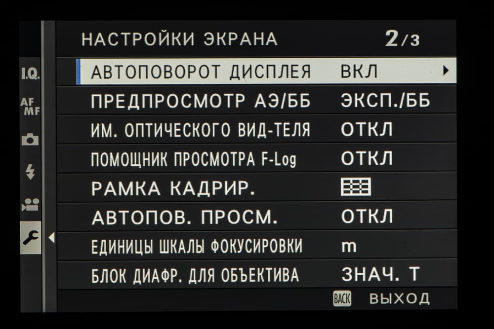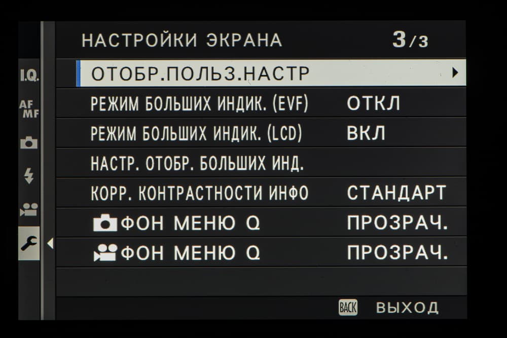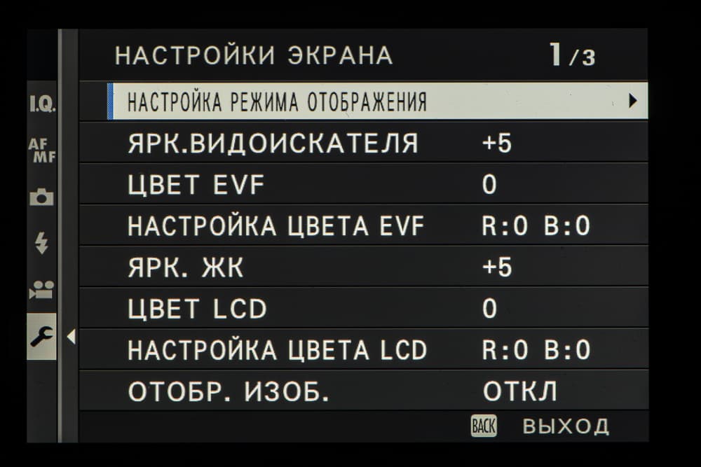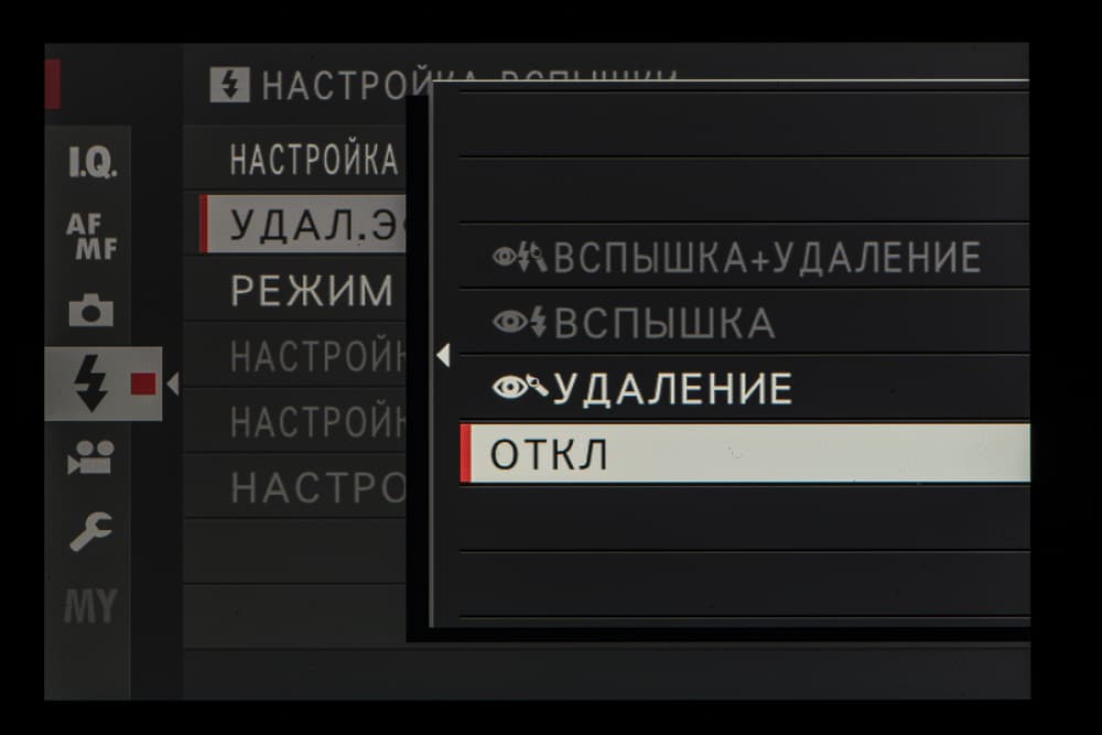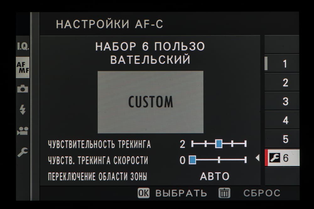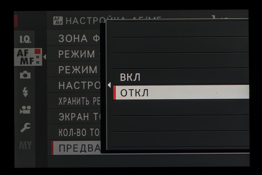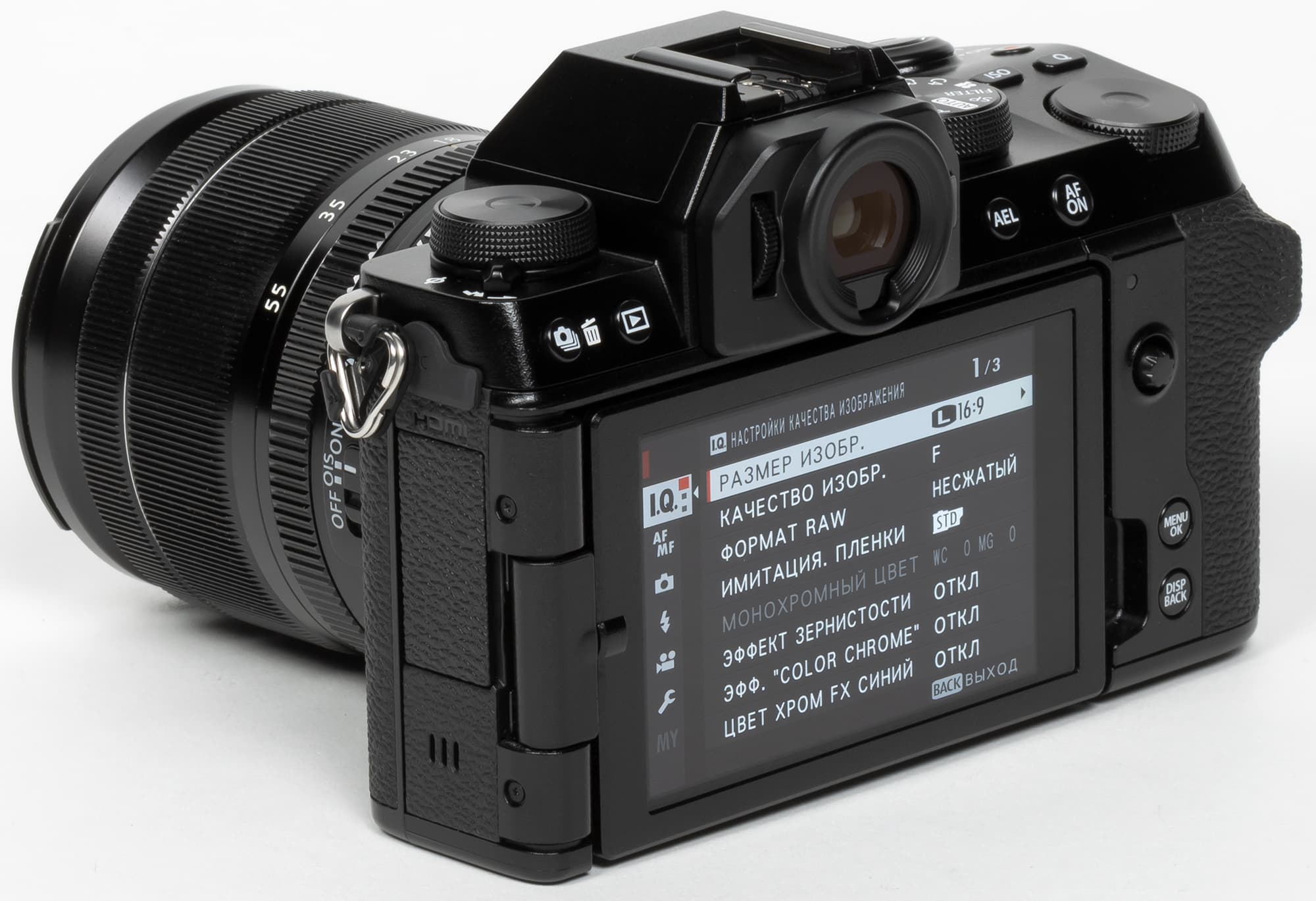 Выбор пленки желаемого типа доступен из быстрого меню. Листание производится колесом левого селектора. Эффекты постобработки применяются, естественно, только к JPEG, параллельно можно сохранить файл в формате RAW.