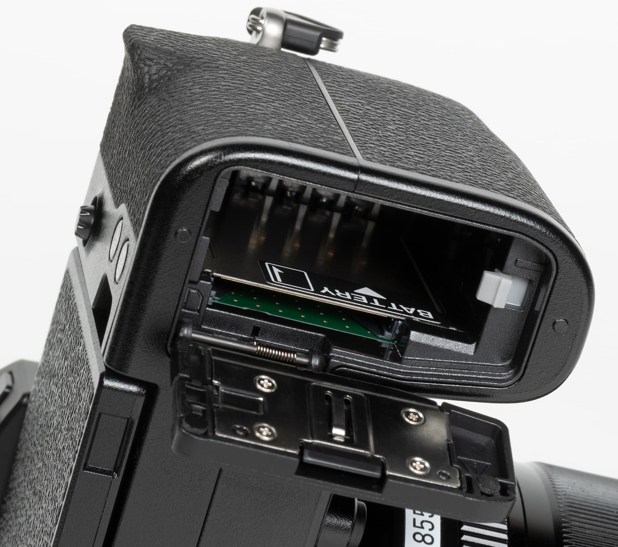 Батарейный отсек конструктивно совмещен со слотом для карт памяти SD/SDHC/SDXC.