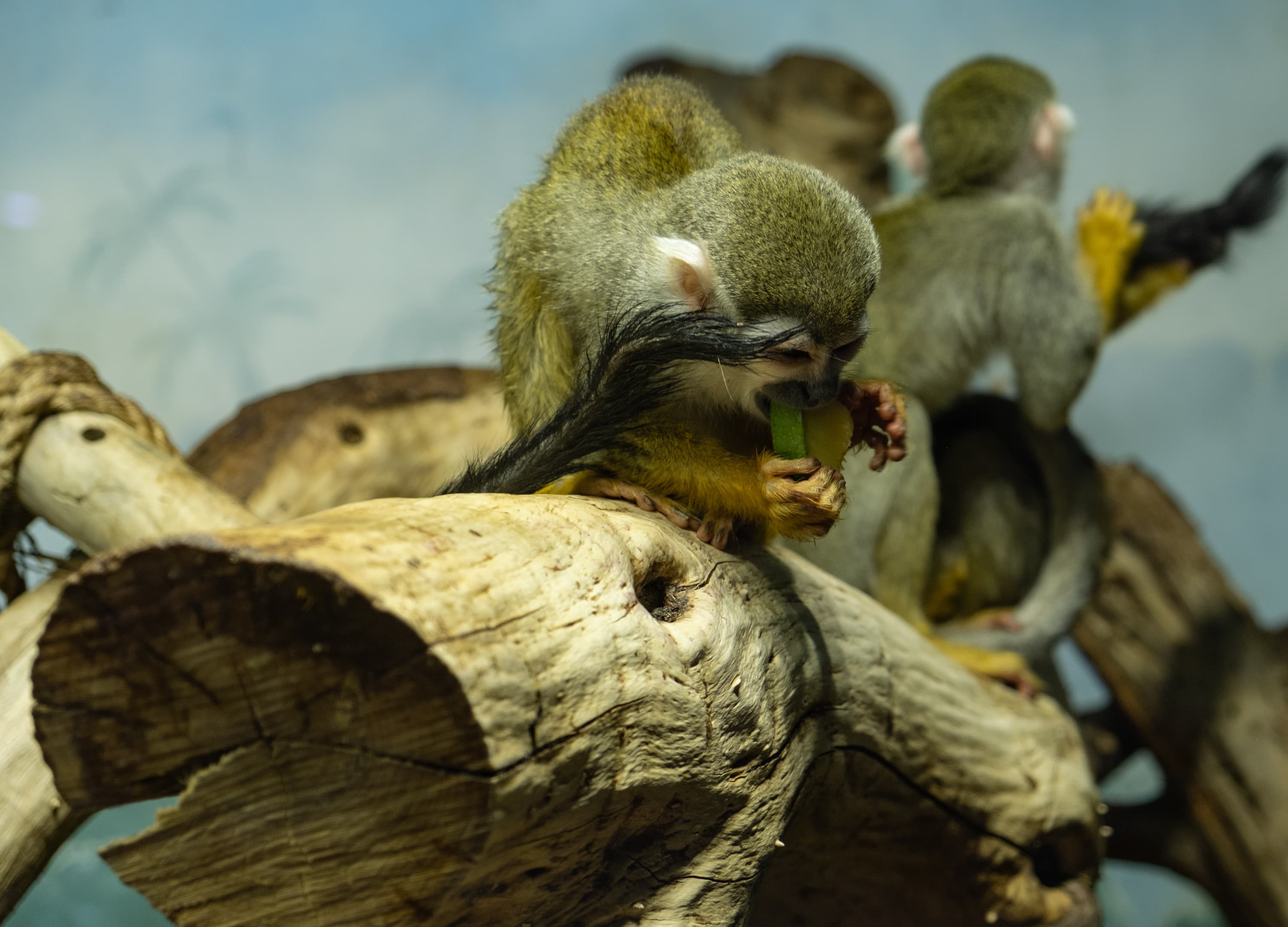 Серия 1. 55 мм; F4; 1/125 c; ISO 1000. 17 кадров. Фокусировка по глазам левой верхней обезьяны.