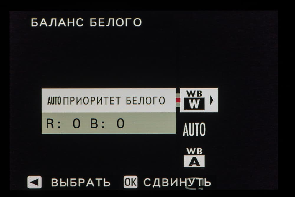 - автоматический баланс белого (АББ).