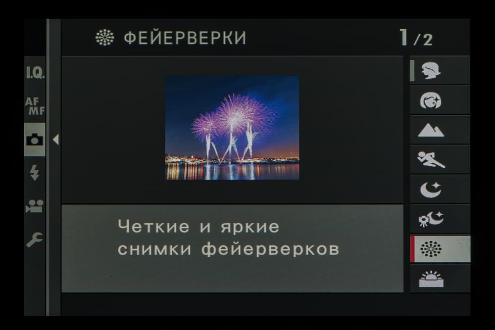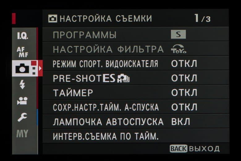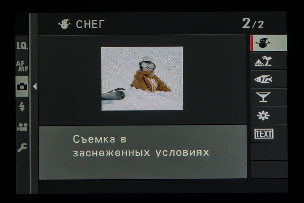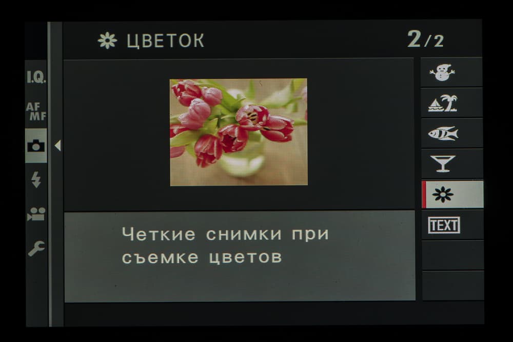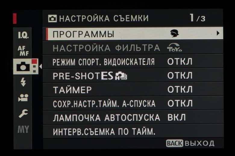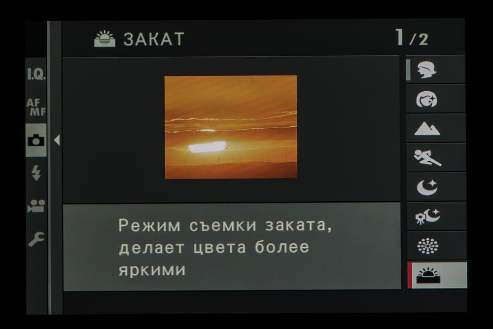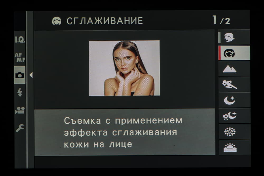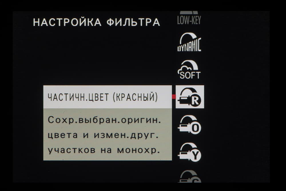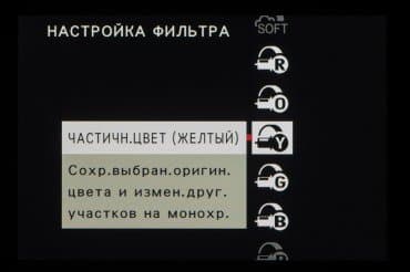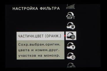 Колесо правого селектора в зависимости от выбранного съемочного позволяет выбирать фильтры и программы.