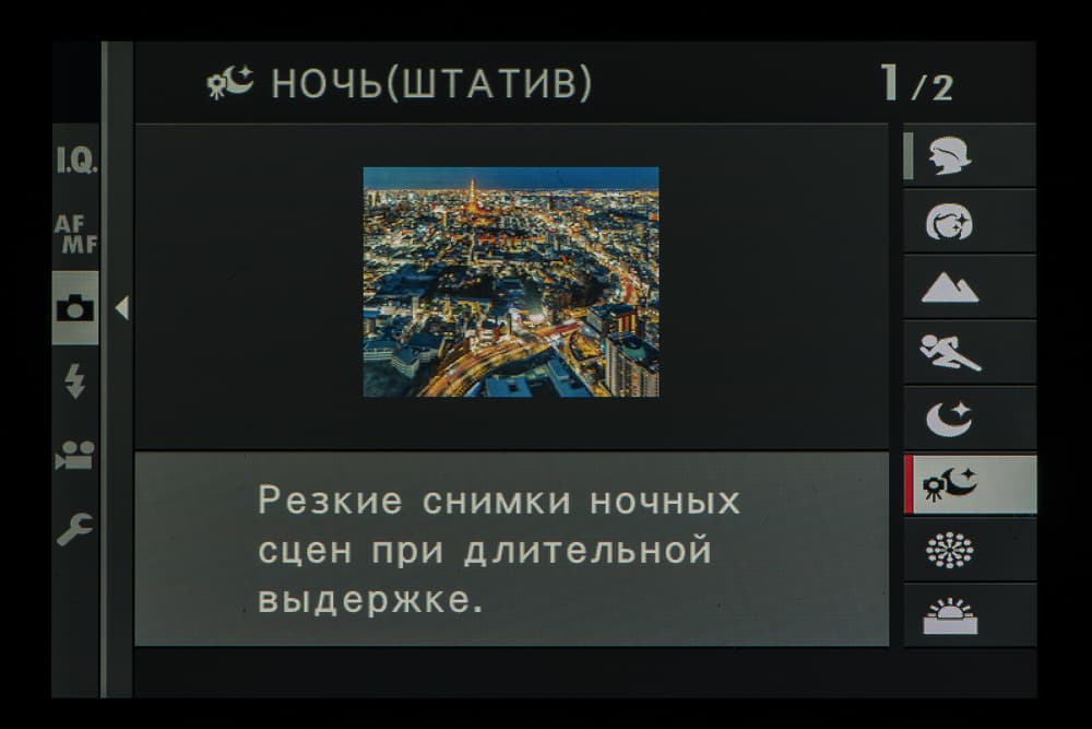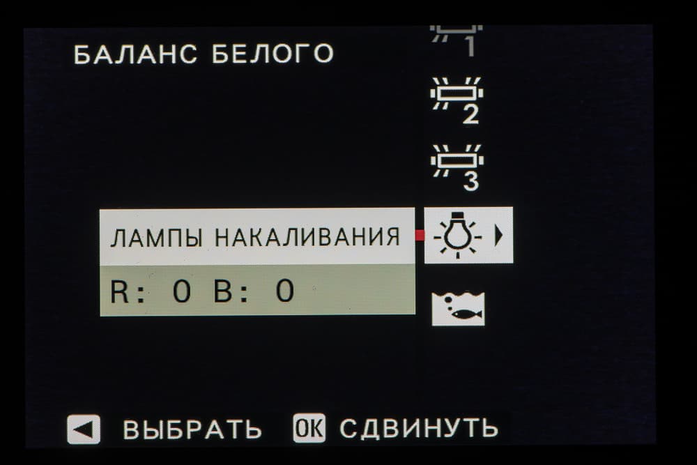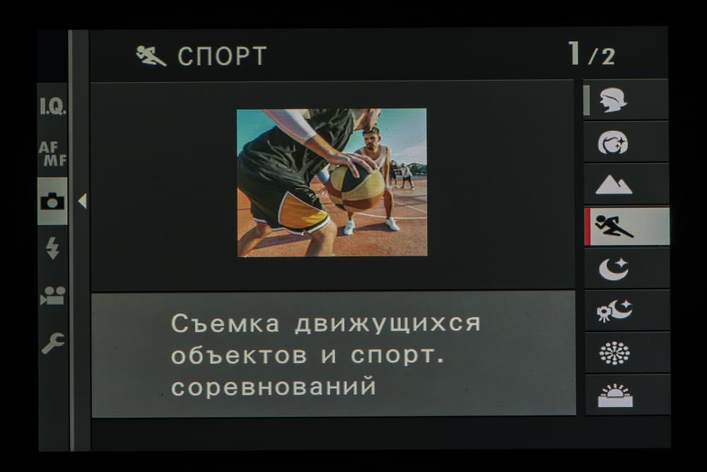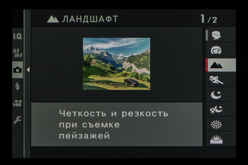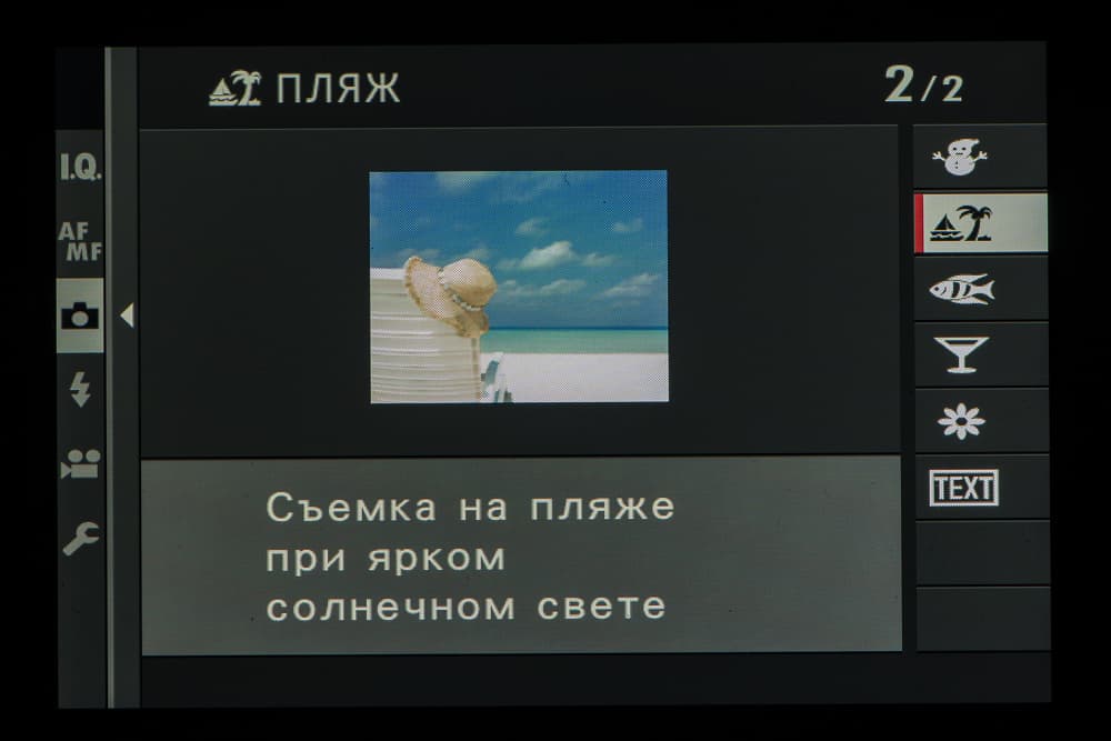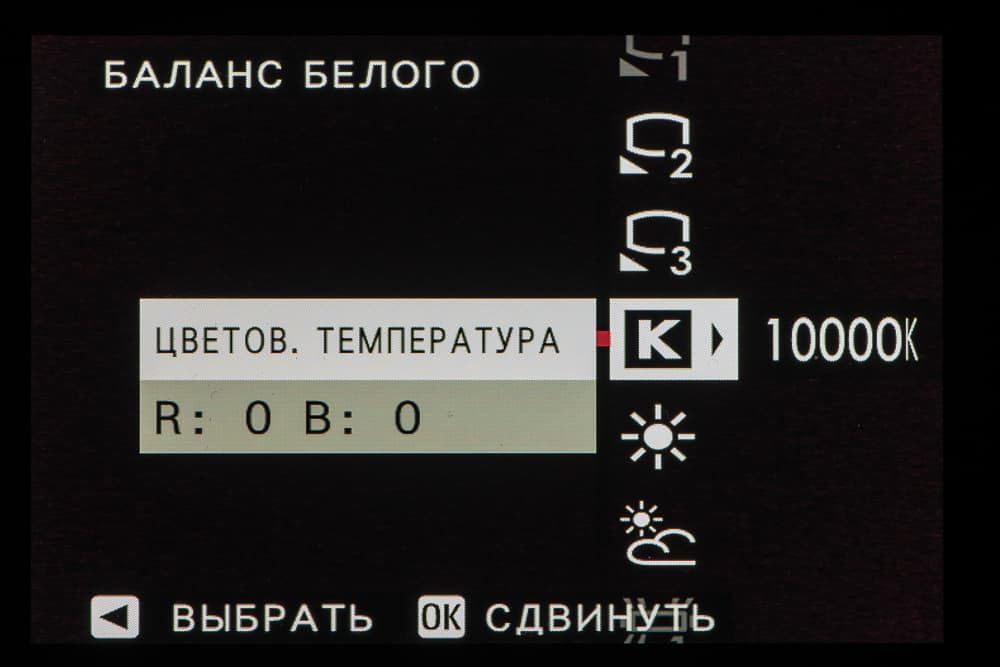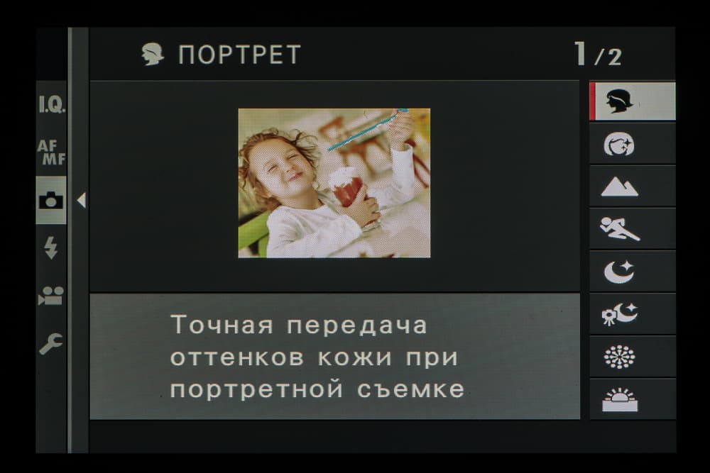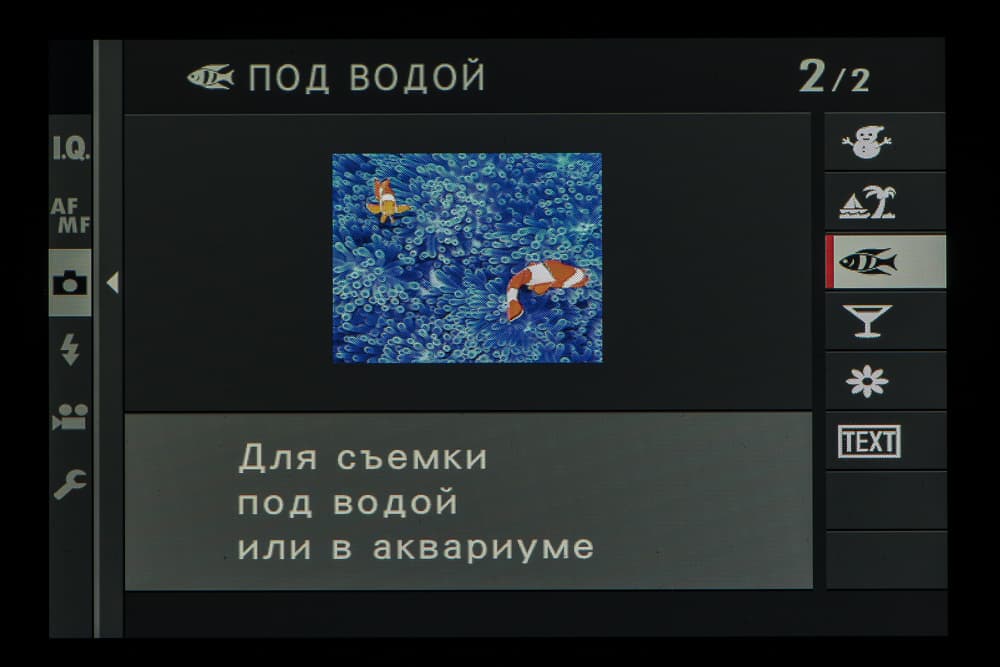 Колесо правого селектора в зависимости от выбранного съемочного позволяет выбирать фильтры и программы.