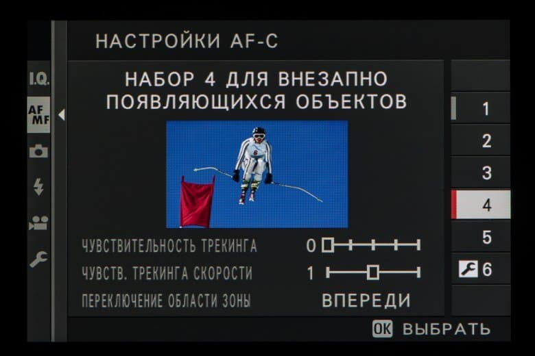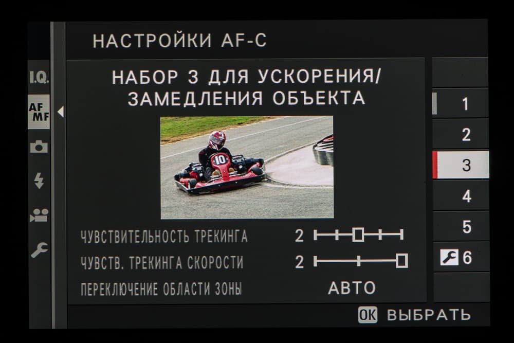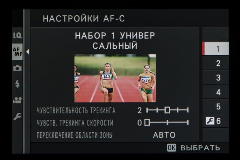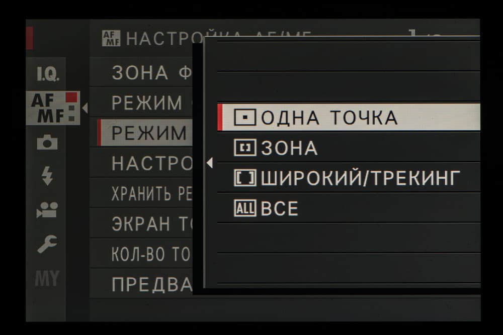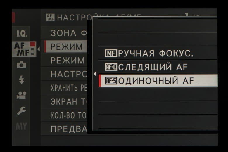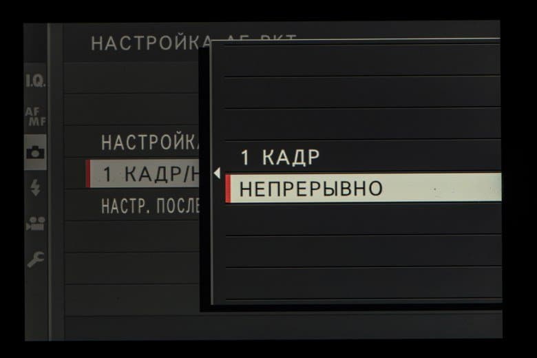 - однокадровая или следящая автоматическая фокусировка (в зависимости от динамики сцены),