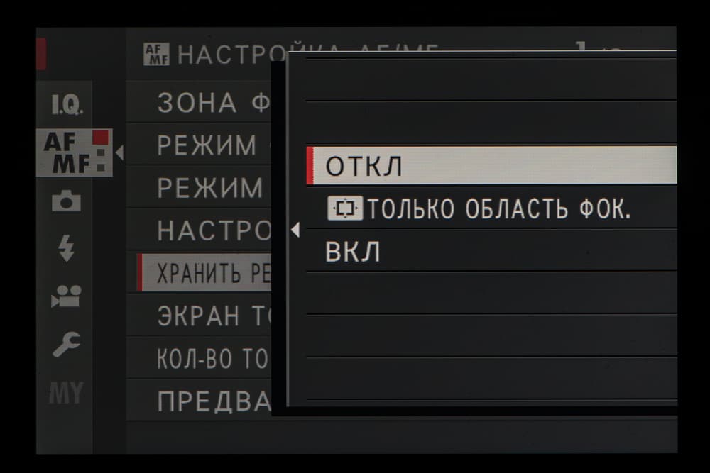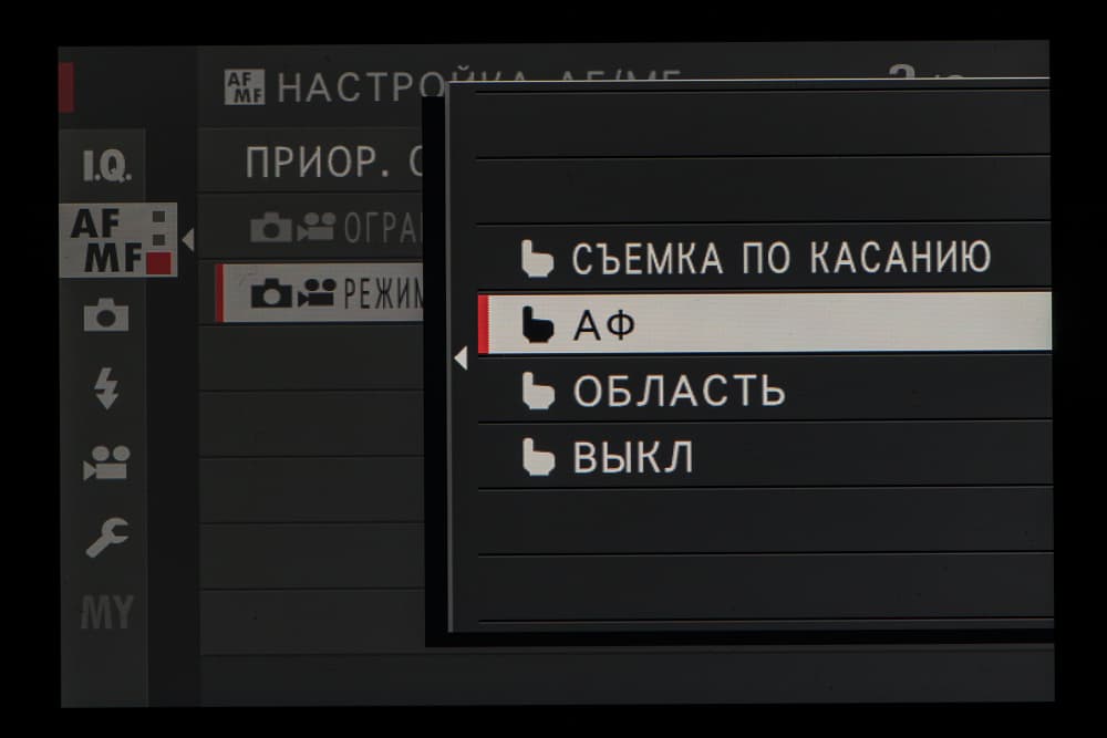 | Режимы фокусировки | однокадровая, непрерывная, ручная |