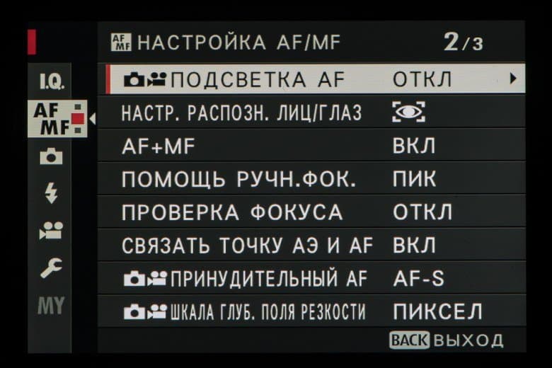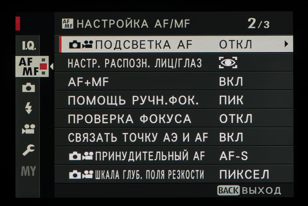 | Минимальная освещенность для работы АФ | от −7 EV2 |